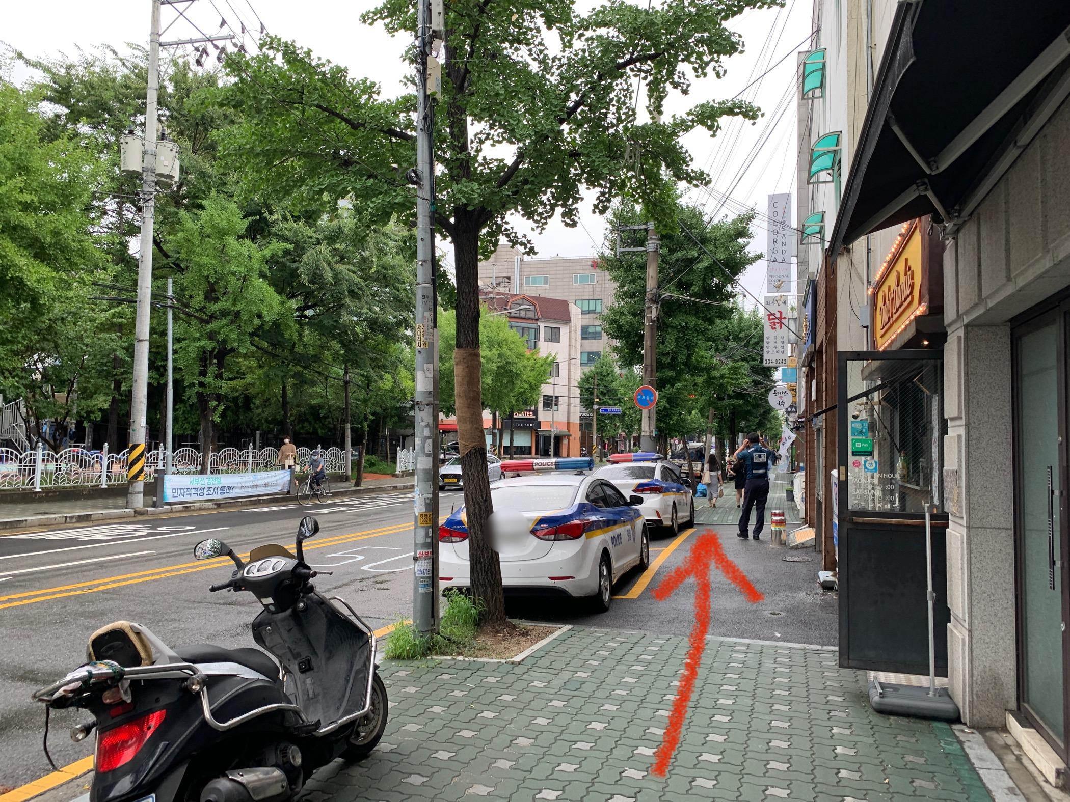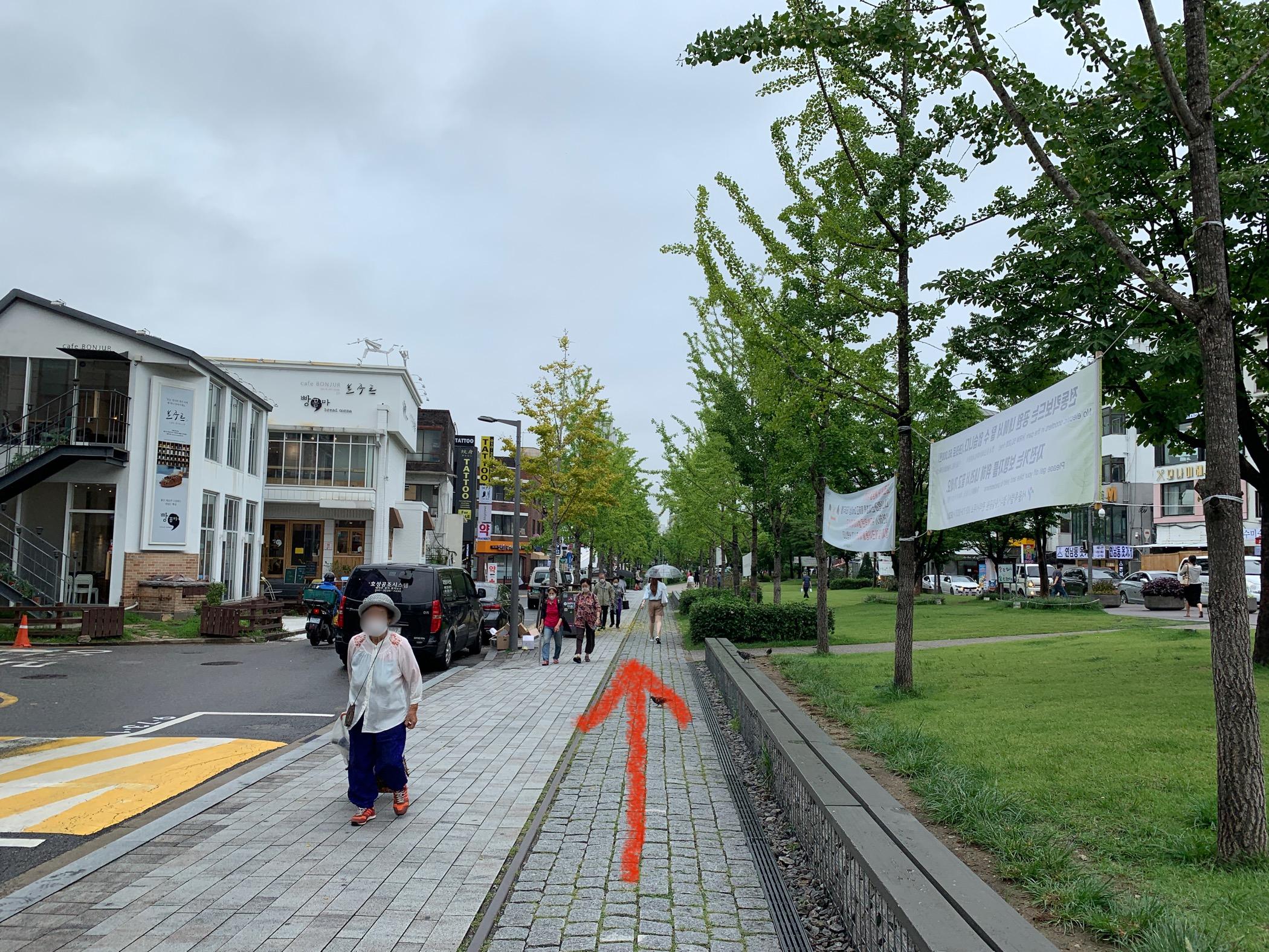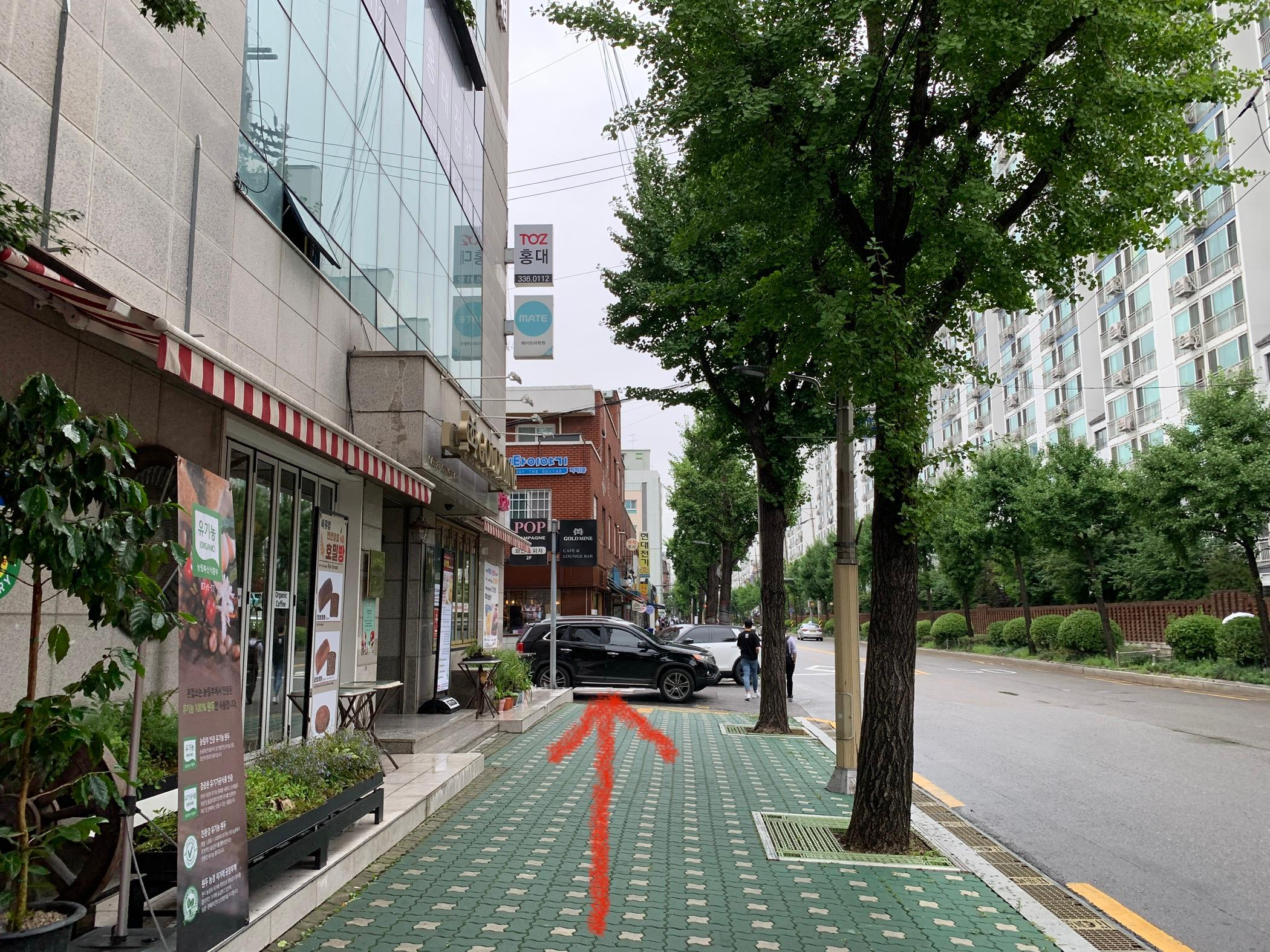 弘大入口駅3番出口を出て、その方向のまま真っ直ぐ進む。