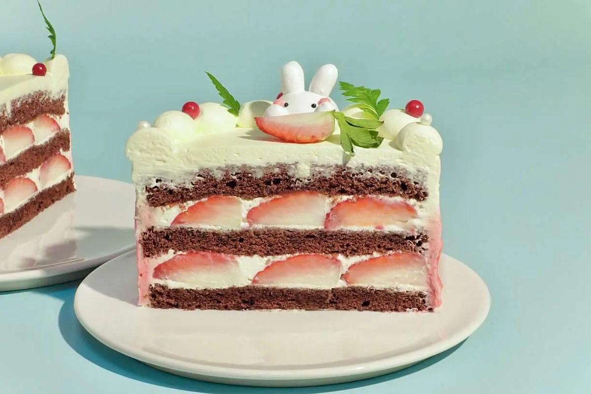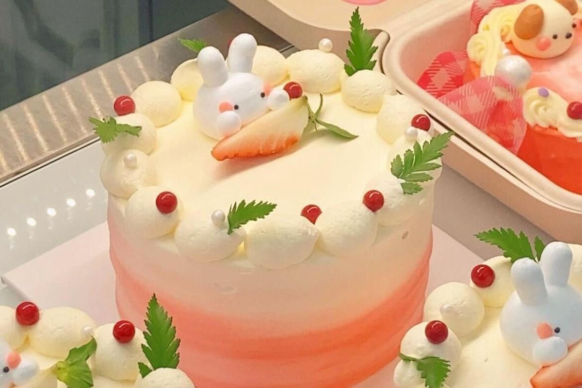 上の写真はウサギが乗った生クリームケーキ