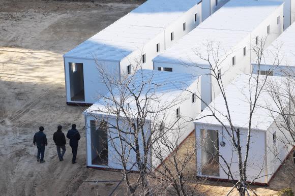 コロナ19の新規確診者が増えながら、感染病専門病院の病床稼働率が、90%に迫っていることと知らされた。ソウル市は市立病院に、コンテナ型の治療空間150つを、今月15日以前までに設け、自治区ごとに別途のセンターも稼動する計画だと明らかにした。写真は8日、ソウル中浪区 ソウル医療院に設置された、コンテナ型治療空間。2020.12.8 オ·ジャンファン記者 5zzang@seoul.co.kr