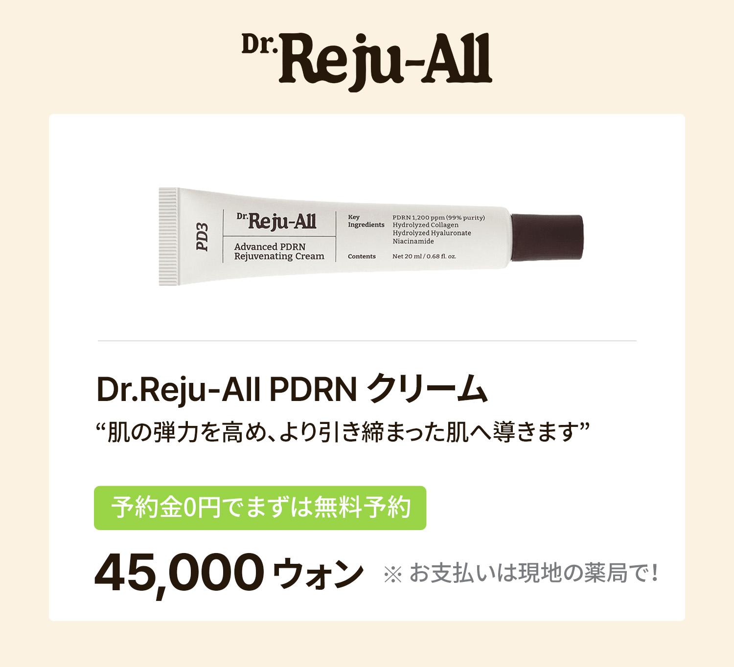 SNSで話題の成分配合のDr.Reju-All(ドクターリジュオール)PDRNクリームまずは無料予約して、現地でカウンセリングを受けてから購入を決めることができます。(その他、メラトニングクリームやリップセラムなど人気アイテムも充実!)