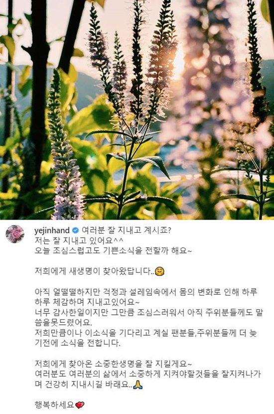 27日、ソン·イェジンは自身のInstagramを通じて、妊娠のニュースを直接知らせた。「今日、慎重ながらも嬉しいニュースを伝えようと思います」と文章を始めたソン·イェジンは、「私たちに新しい生命が訪れました」と、サプライズで2世の便りを伝えた。