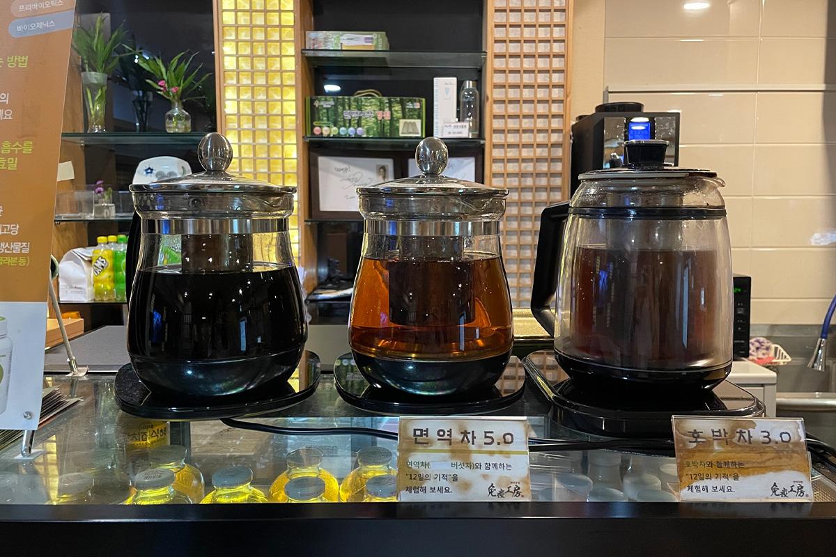 今回波動浴の効果を高めるために、免疫工房セットである乳酸菌発酵食(효밀/ヒョミル)、波動卵、免疫ジュースを食べることにしました