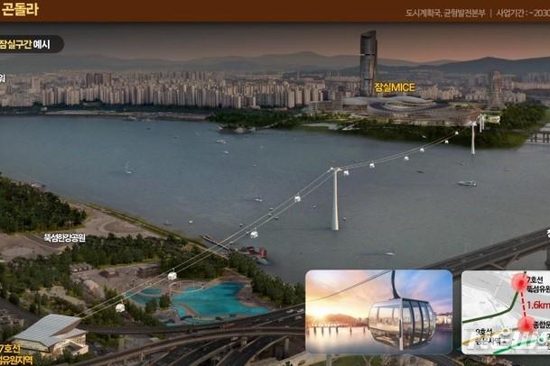 2026年着工を目標に推進されているゴンドラは蚕室からトゥッソムを結ぶ予定で1.6kmの距離を秒速4~5mの速度で動き、同区間を5~6分で移動できるようになると言います