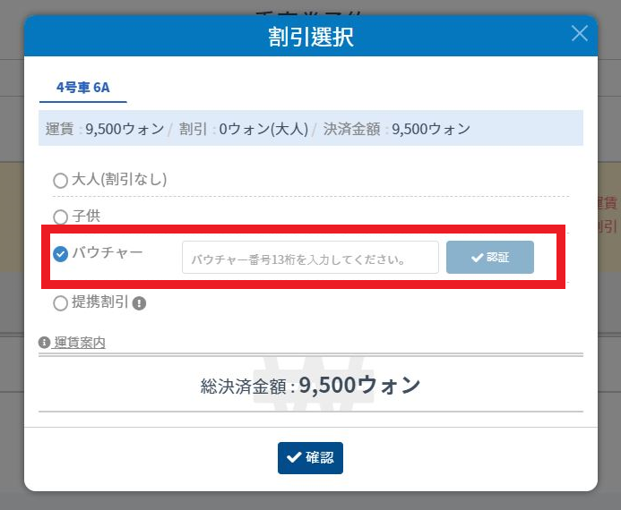 | Step 3 | 購入方法のページで「乗車券交換(バウチャー)」を選択します。 ![]() |