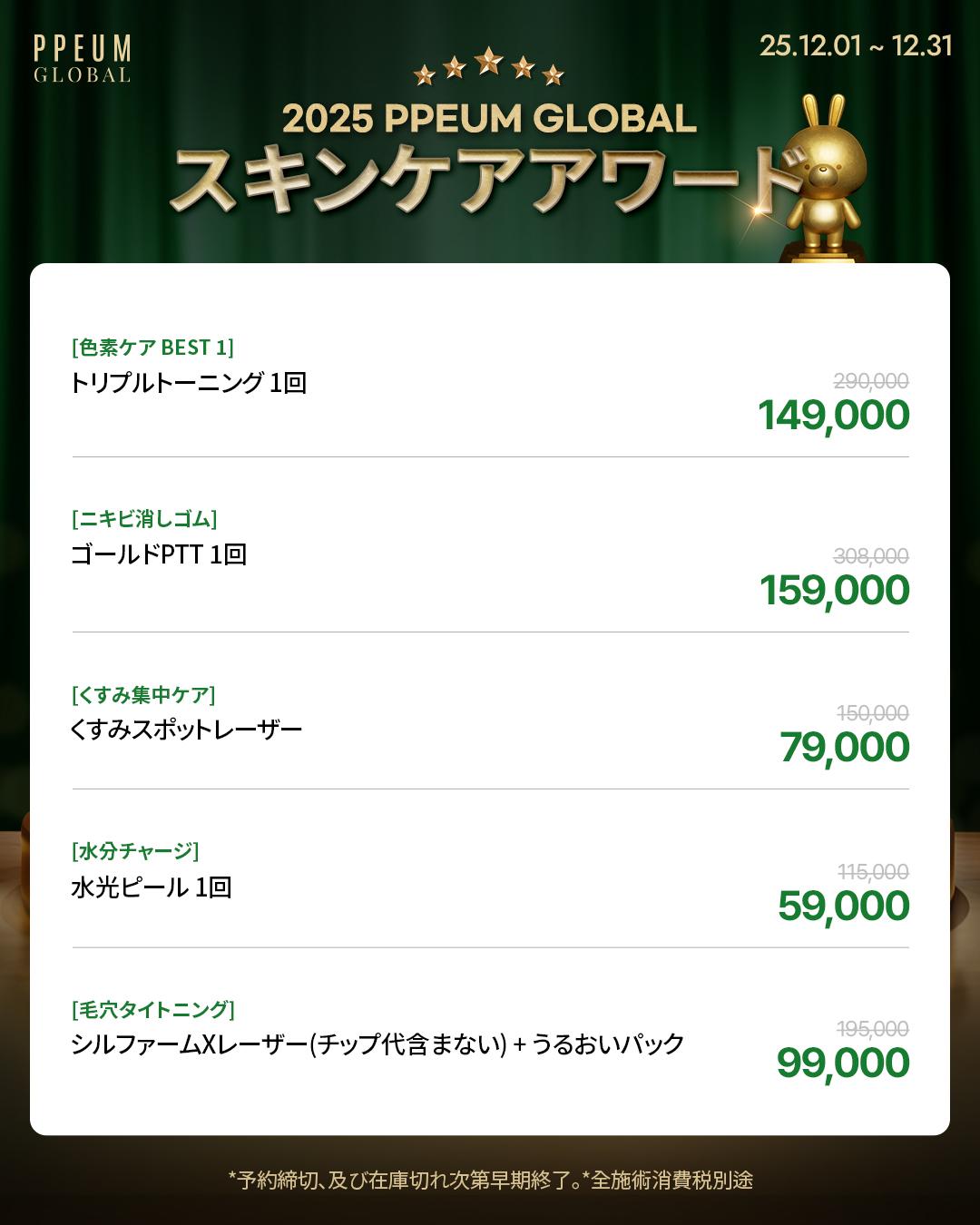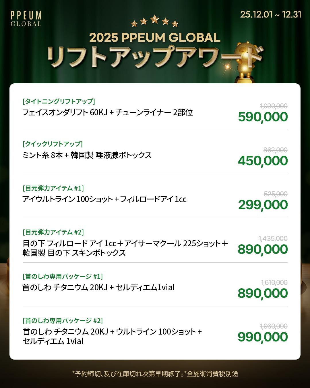 💚 おすすめポイント国際的な医療サービスでK-Beautyを先導韓国名門大学出身の医療陣による研究活動に基づいた高度な技術で最上の医療施術を提供明洞駅の8番出口より徒歩1分とアクセス便利ソウル旅行中に外国人旅行者も気軽に立ち寄れるロケーション日本語が話せるスタッフがいて安心!外国語のパンフレットや荷物保管ができるラゲージゾーン、タックスリファンド(TAX REFUND)専用キオスクなど、外国人利用者を配慮したサービスVIPルームでプライベートに利用可Creatripでお得にプムクリニックの金券を購入!(ご予約はプムクリニックのカスタマーセンターまで直接お問い合わせ願います)│メニュー[特別価格] 2025.12.01~12.31