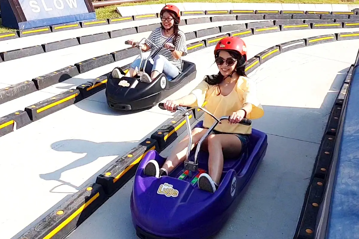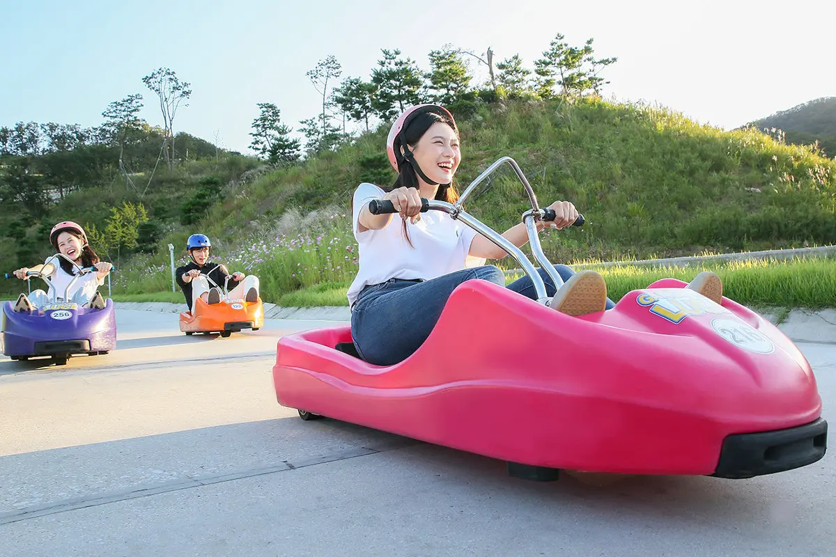 全長1.8kmのルートに2つのコースがあり、向きや速度を自由に調節できるカートで傾斜トラックを下るアクティビティです。
