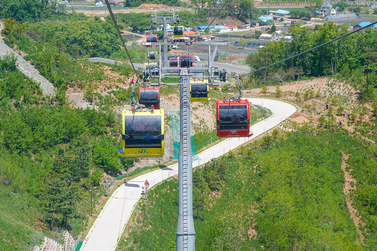 仁川江華島に位置する最新最大の観光名所で、18万本の木と多彩な花が織りなす美しい五色テーマ庭園が広がります。遊歩道を歩くと花開山スカイウォーク展望台にたどり着き、田畑と海を一望できる絶景スポットです。