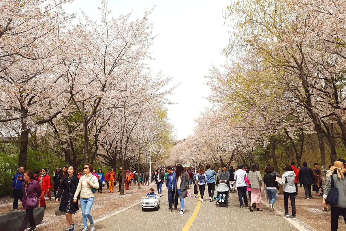 仁川大公園は、仁川で有名な桜の名所で、桜並木を散歩したりサイクリングを楽しめます。湖、動物園、植物園もあり、家族連れやカップルにおすすめです。遠美山ではツツジと桜を同時に楽しめ、ツツジ祭りも開催されます。公演や展示、グルメ市場もあり、多彩な体験ができます。
