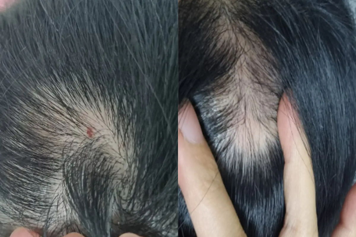 メソガンで栄養アンプルと自己血由来PRPを頭皮に直接注入し、再生を促進しながら毛根を強化します。