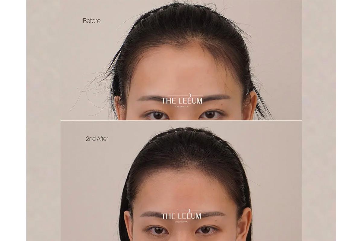 施術説明 | 女性が最も多く受ける施術の一つです。額のラインを丸くすることで小顔効果を得られます。境界線を産毛のように表現してヘアストローク+SMP技法でナチュラルなヘアラインを表現します。 |