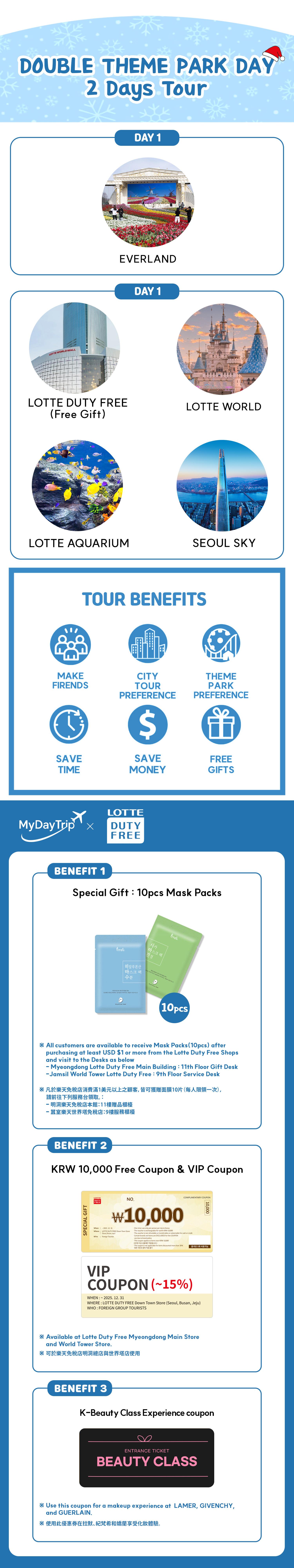 ロッテ免税店でKRW 10,000分の商品券、VIP割引クーポン、さらに10枚の無料マスクなど特別な特典をお楽しみください。