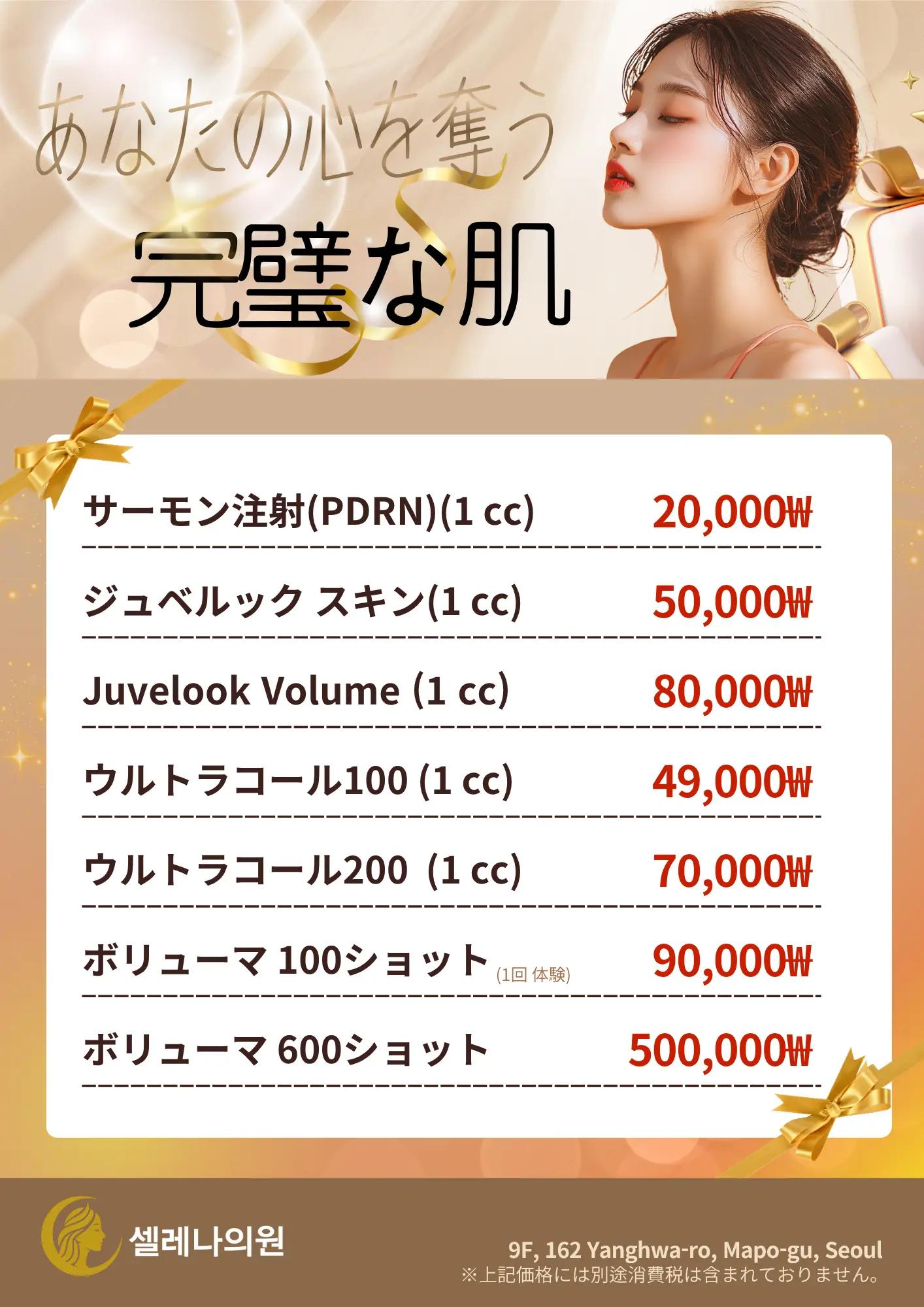 施術説明 | リジュランヒーラー 4cc (手打ち注射)+韓国製スキンボトックス 顔全体 |