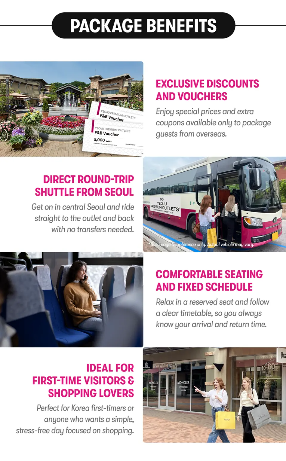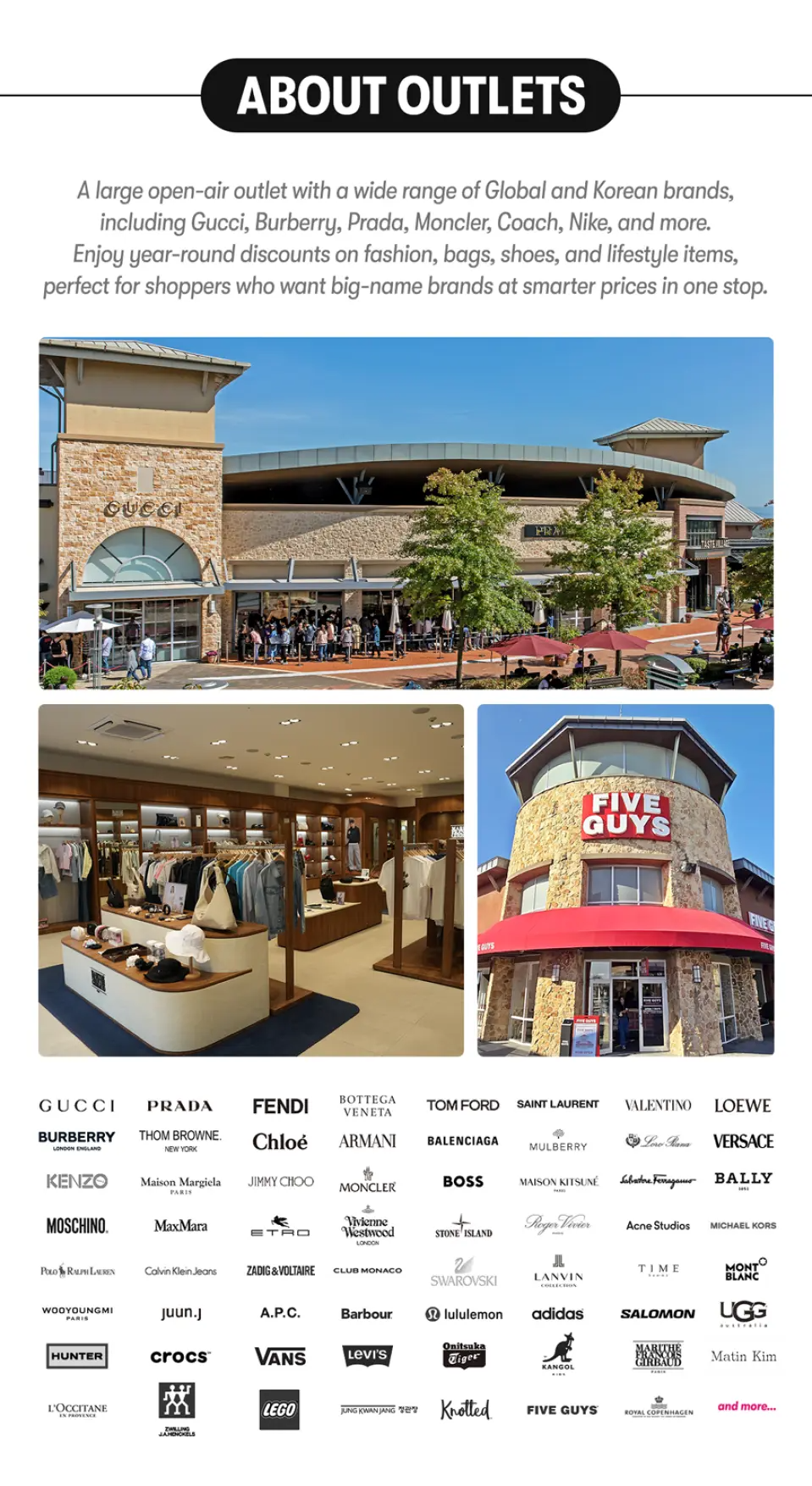 💚 おすすめポイントシャトルバスで快適に京畿道エリアまで移動海外ハイブランド品をお得にショッピング驪州プレミアムアウトレット驪州プレミアムアウトレットで人気のデザイナーブランドを楽しみながら、ラグジュアリーなショッピング体験を。ショッピングの後は、話題のレストランで特別なひとときをお過ごしください。[이미지 슬라이더]