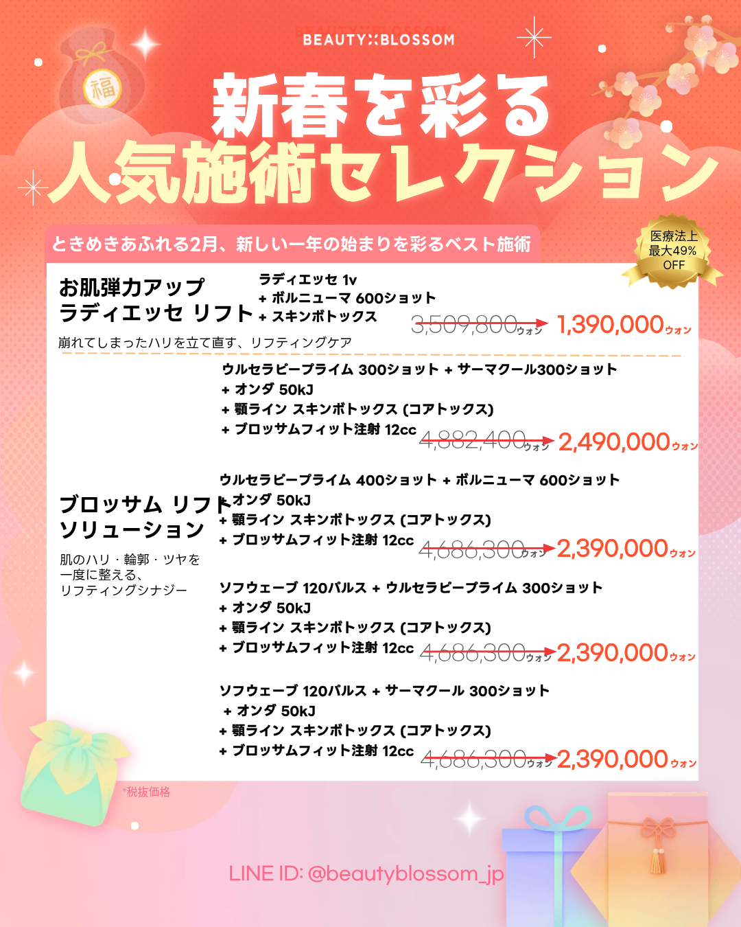 韓国美容をもっとお得に—人気施術を特別価格で体験するチャンス🤍今だけのCreatrip限定プラン、予約受付中!施術を決めていなくても相談無料予約で気軽に訪問可能Creatrip経由の予約なら人気施術を限定価格でお得に体験可能安全で効果的な施術を提供する高水準のグローバルプレミアムクリニック2025韓国消費者産業評価優秀病院(清潔度・利便性・親切度部門)に選定最新設備(Eve V 3D肌診断機、マトリックスガスマスク麻酔など)を使用日本語スタッフによる安心サポート&大型荷物の保管可能個室完備のプライベートな環境、合意駅3番出口すぐドクター紹介イ・ゴンホ代表院長現) ビューティーブロッサムクリニック 代表院長前) Jfeelクリニック 弘大店 院長前) プムクリニック 弘大店 院長前) メイピュアクリニック 弘大店 院長大韓美容整形レーザー医学会 正会員大韓フィラー学会 正会員大韓皮膚美容学会 正会員大韓肥満美容学会 正会員大韓肥満研究医師会 正会員大韓抗老化学会 正会員料金表セルディエムは、人由来のECM成分(コラーゲン・エラスチン・グリコサミノグリカンなど)を補って肌の構造を見直し、肌の問題を根本から改善する次世代の肌再生スキンブースターです。効果・目的乾燥肌の改善、潤いのある肌へ毛穴の開きや目立ちを軽減小じわやハリ不足の改善全体的な肌質の向上