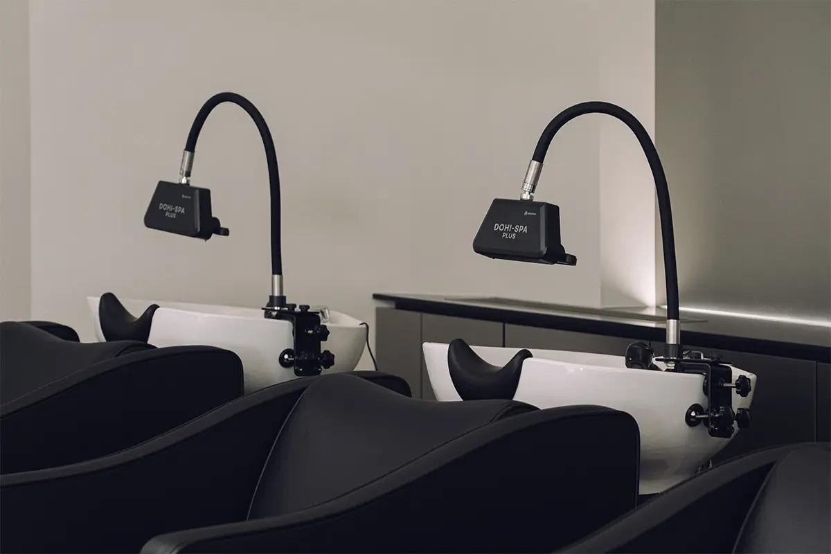 頭皮診断 > 頭皮アロマオイルセラピー > 頭皮デトックス > スケーリング剤塗布 > マッサージオイルセラピー > 僧帽筋温熱マッサージ > リンパマッサージ > シャンプー > 頭皮ガルバニックで毒素排出> 洗い流す(DOHI-SPA) > トニック > ガルバニックマッサージ > 冷風ドライ > 仕上げドライ > アフター頭皮診断