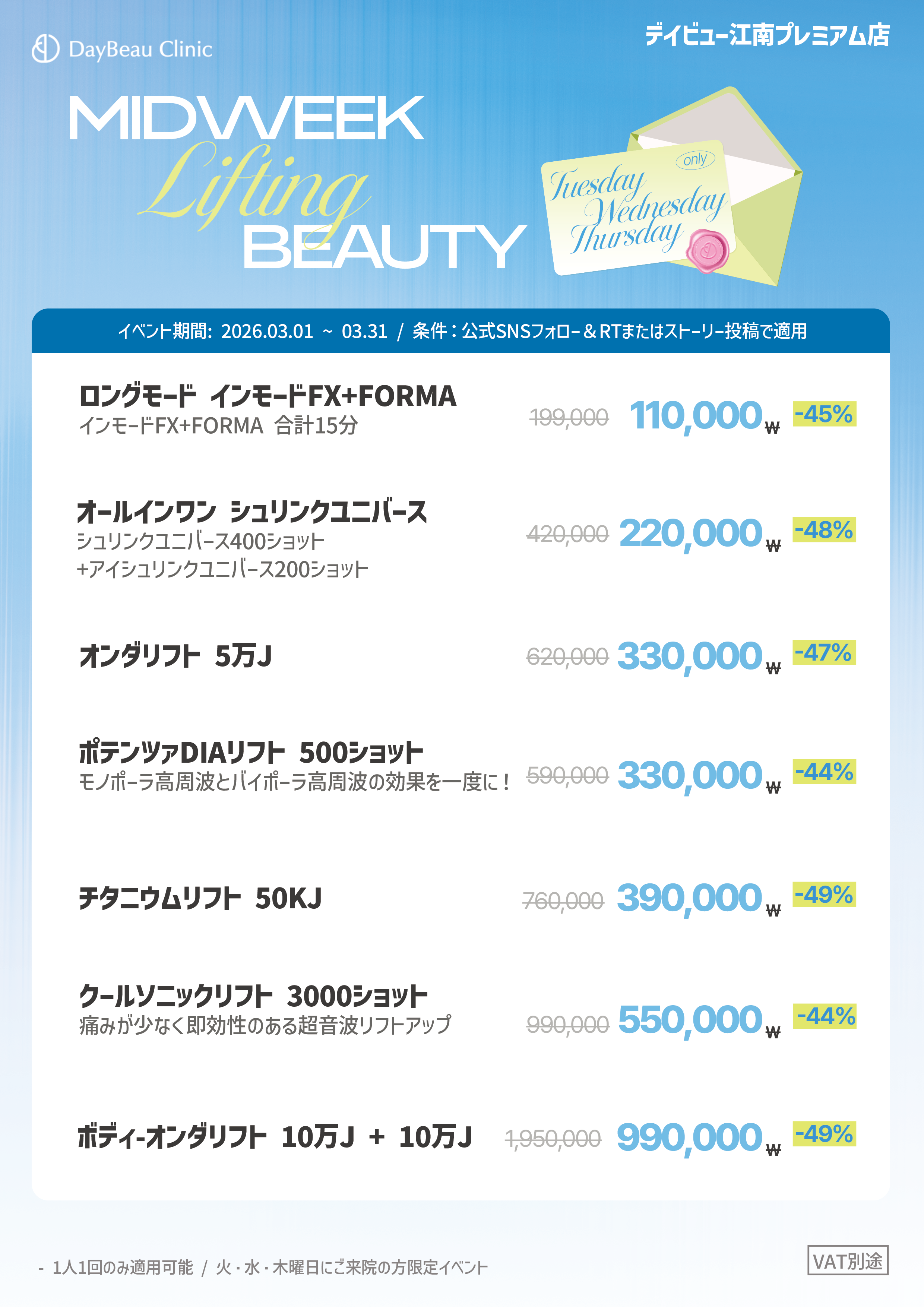 Creatripを通じてご予約のうえ、Daybeau 明洞 The Premium店/明洞2号店/江南店へ実際にご来院いただいた方に、