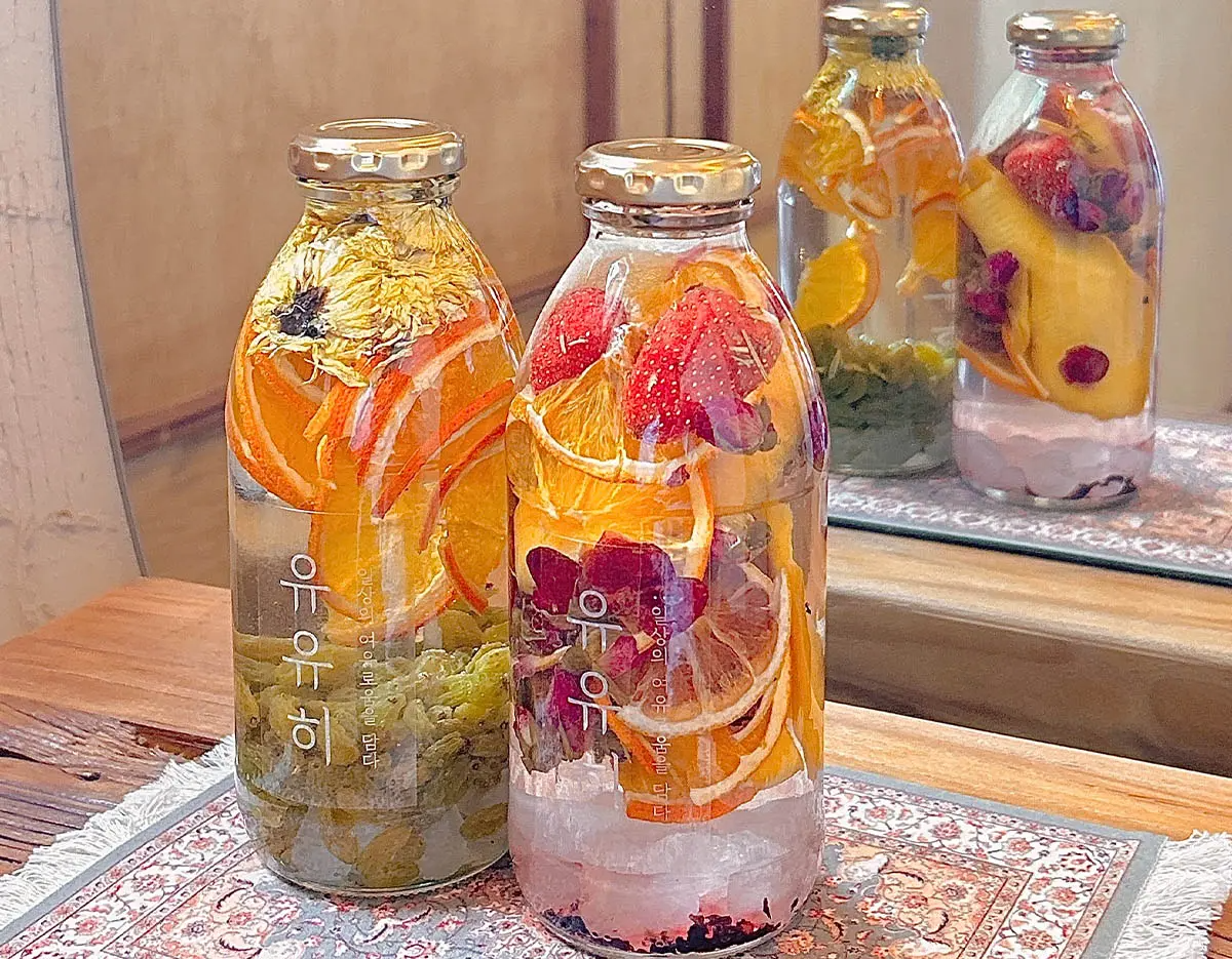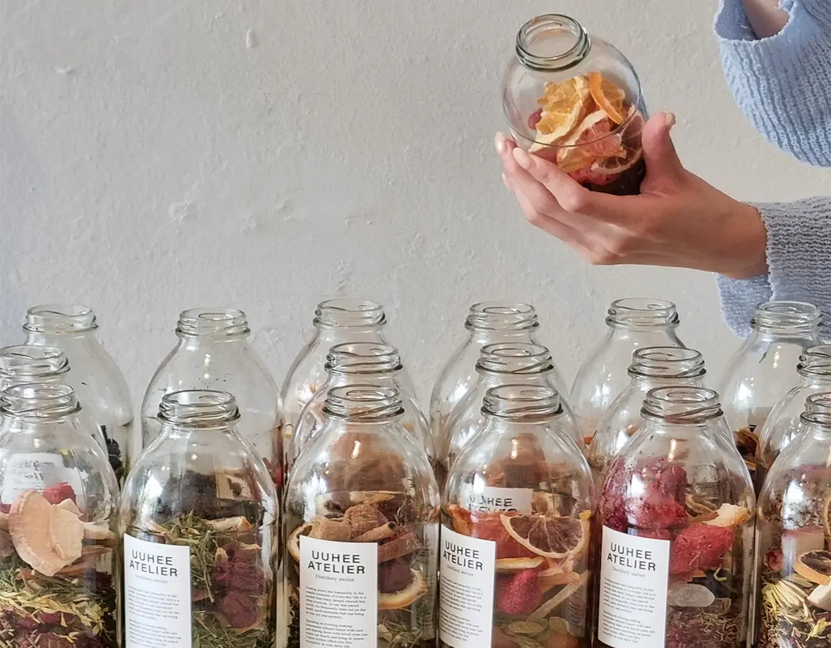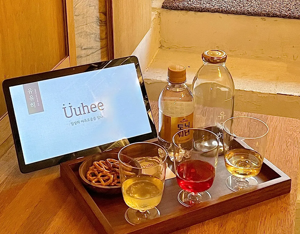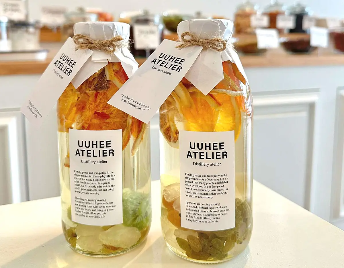 - 「UUHEE 弘大」は50種類以上の材料を自分で組み合わせてオリジナルの漬け酒を作るワンデイクラスを開催するスペースです。韓国の伝統素材を使った薬草酒、果実酒、花酒などさまざまなスタイルの漬け酒が作れ、韓国でしか体験できないユニークなアクティビティです。