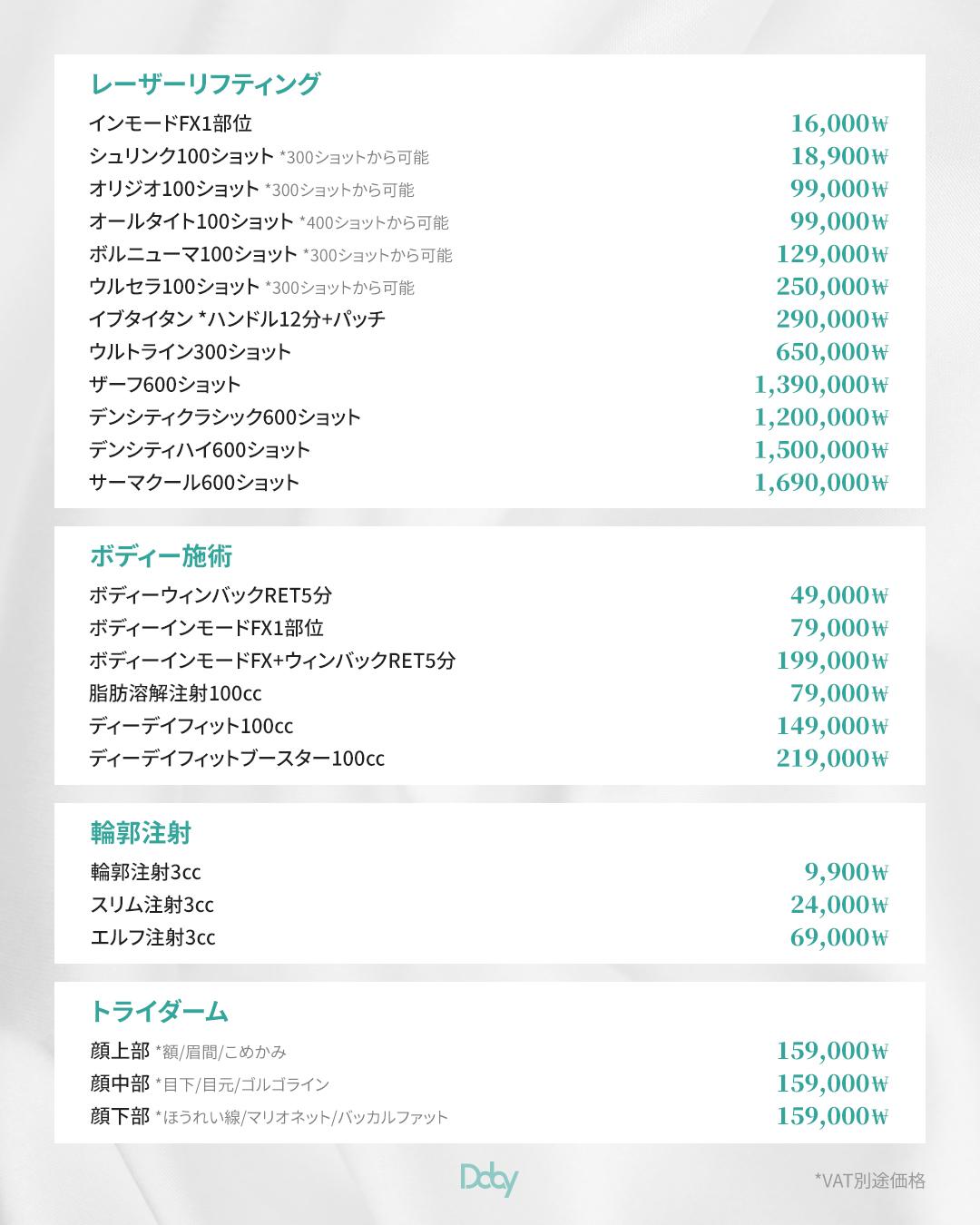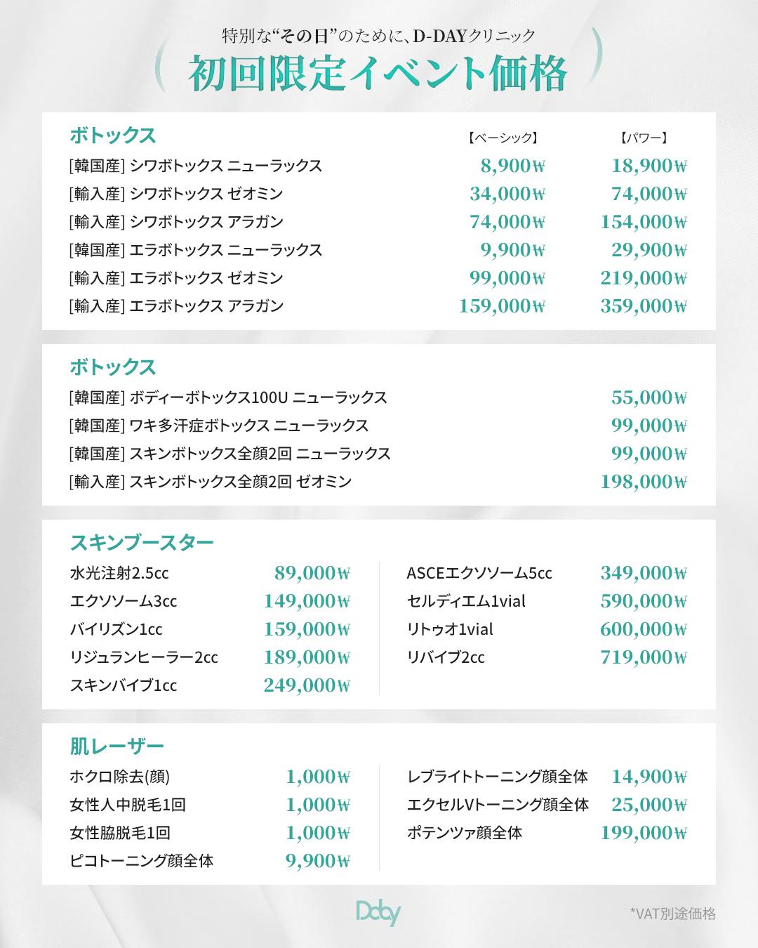 Creatrip限定特典💚 施術が決まってなくても「相談無料予約」OK💚 外国人追加料金なし!現地と同じ「適正価格」💚 レビュー投稿で施術代金がさらに「5%OFF」[D-DAYクリニック 釜山院] が選ばれる理由相談からアフターケアまで一貫した管理システム不要な勧誘なし!肌状態に合わせたパーソナル治療現地の韓国人が通い続ける高いリピート率と技術力プロによる丁寧なクレンジングから仕上げで対応睡眠麻酔OK!痛みが心配な方もリラックス施術日本語通訳が常駐!カウンセリングから術後も安心荷物預かりあり。観光のついでに寄れる南浦エリア拡張したグローバルセンターで広々と快適な空間ドクター紹介 料金表