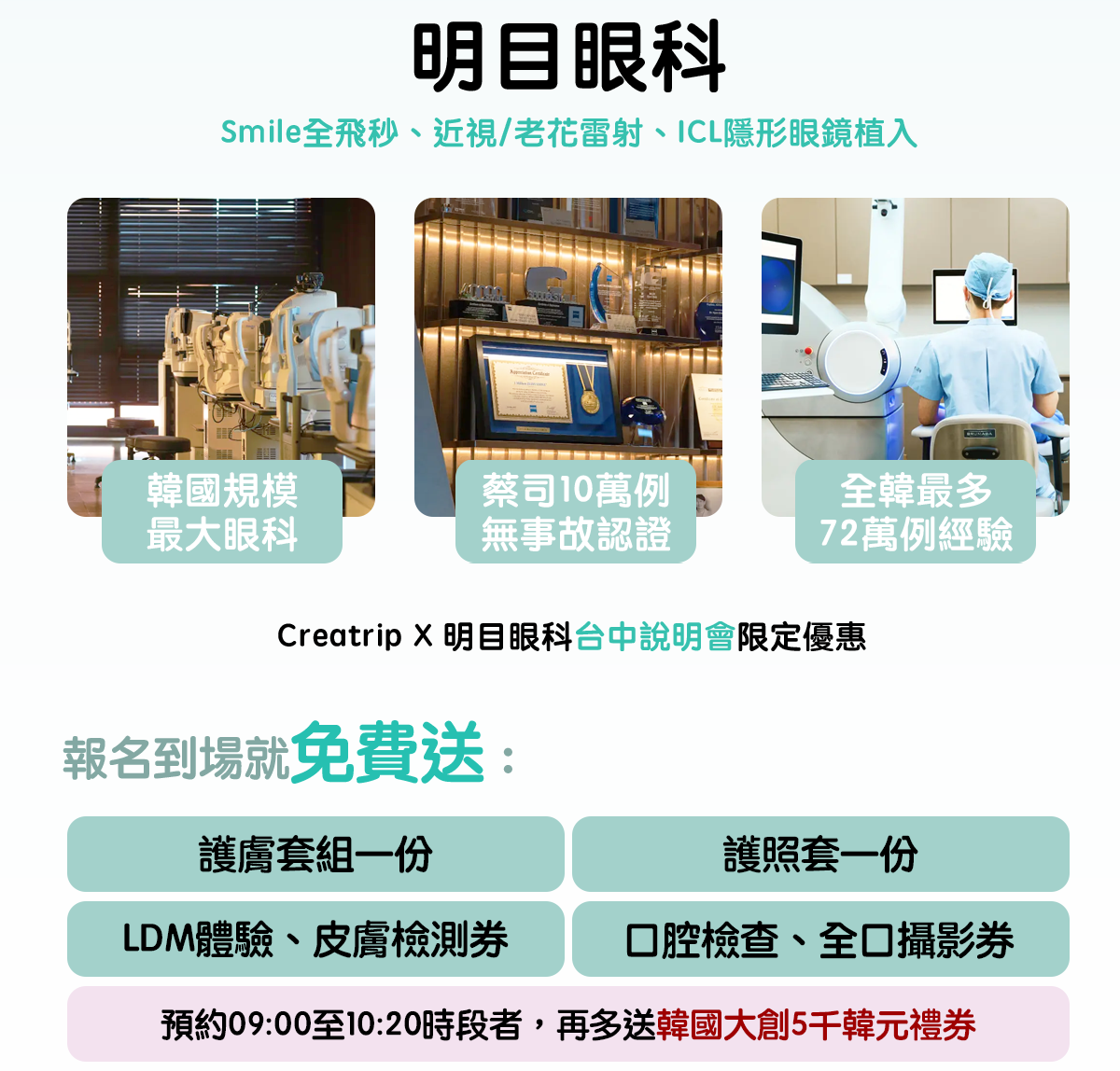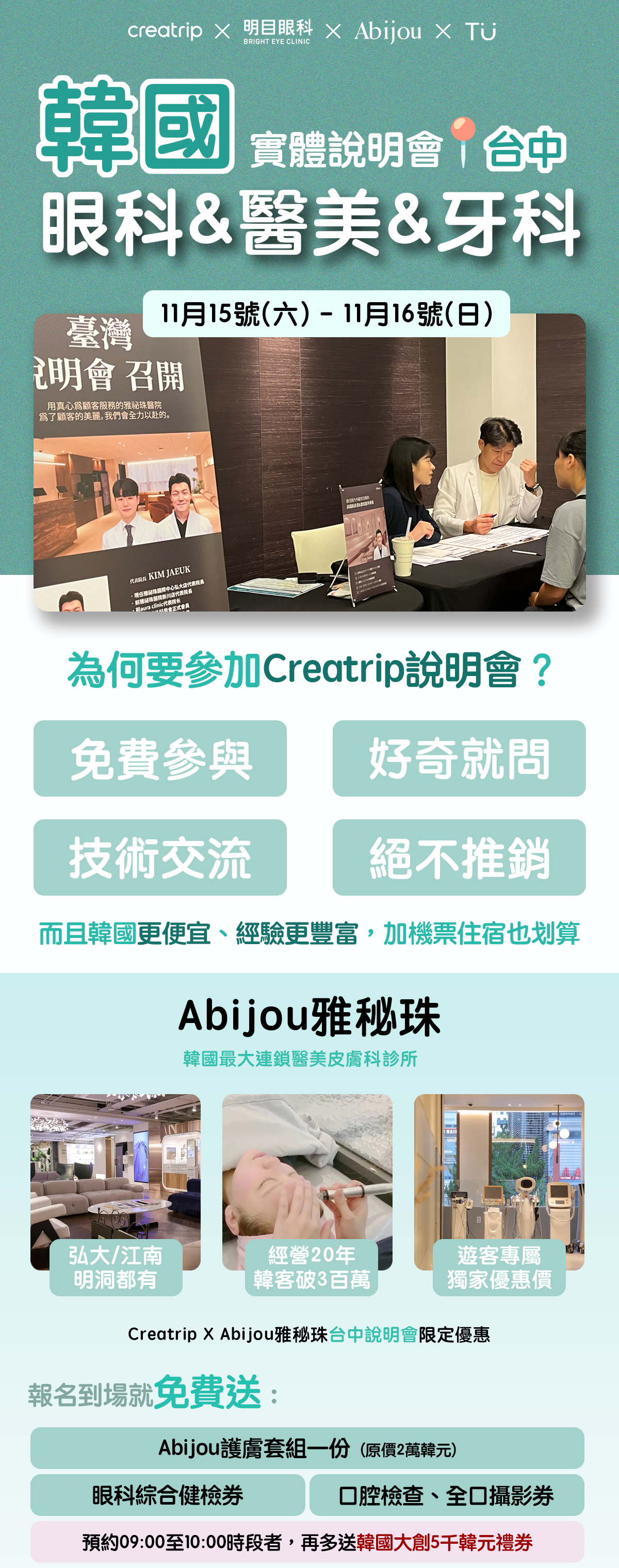 韓國眼科/牙科/醫美在台灣諮詢!僅此一場「台中說明會」熱烈報名中!免費參加再享Creatrip優惠