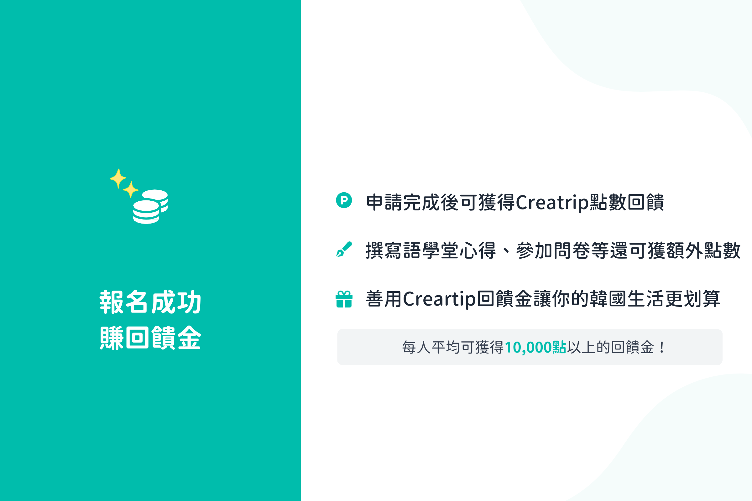 平均下來,Creatrip申請者可以拿到10,000點以上的回饋金!記得把握每一次賺取回饋金的機會,讓你的韓國留學生活更划算!