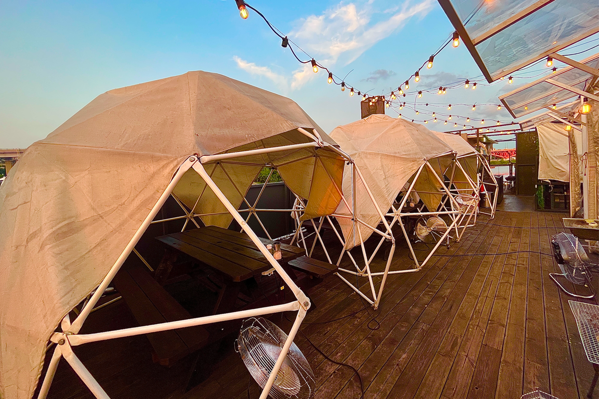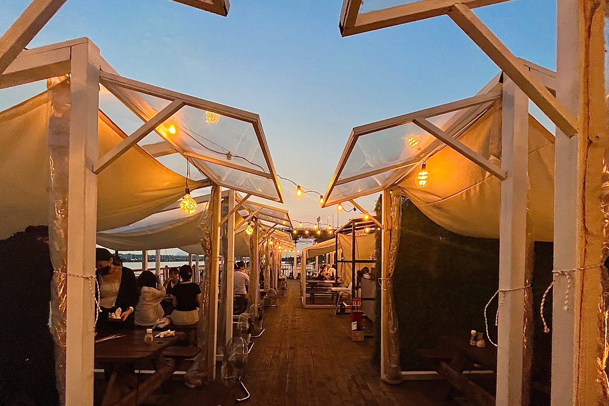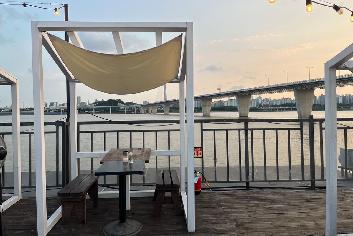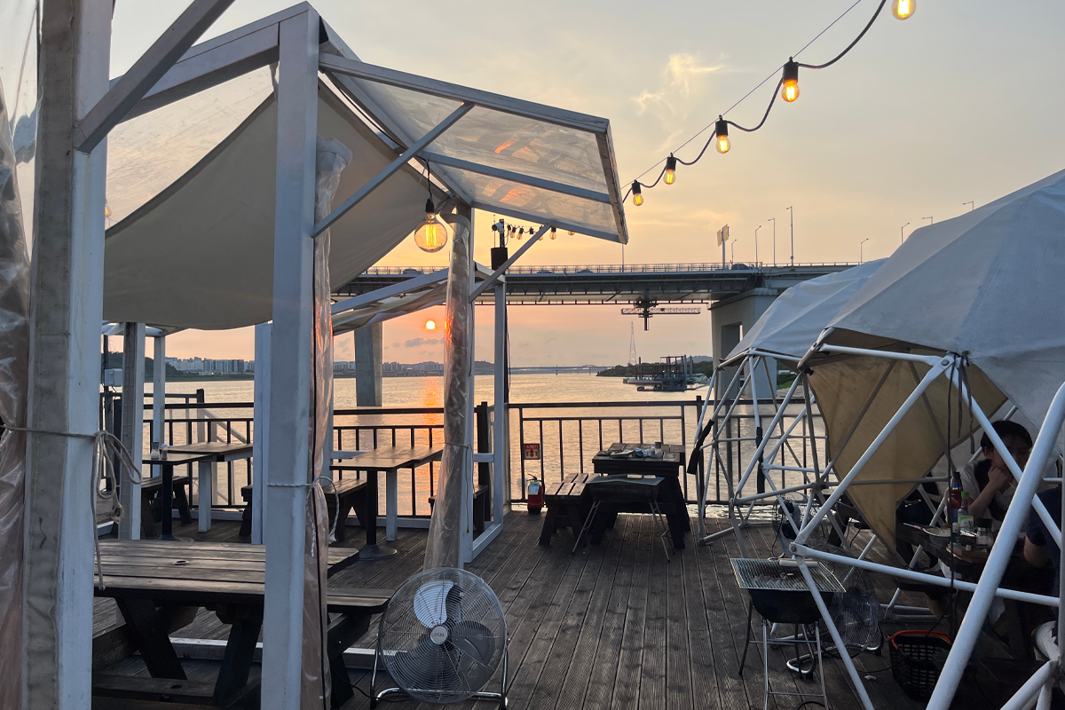 Суудал нь барилгын хоёрдугаар давхарт байрладаг. Ширээнүүд нь тусдаа бөмбөгөр дээвэртэй майхнуудын дотор байрладаг тул та хувийн орон зайтай байх боломжтой. Энэ нь эндээс нар жаргахыг, мөн Сөүл хотын шөнийн үзэмжийг харах сайхан газар юм.