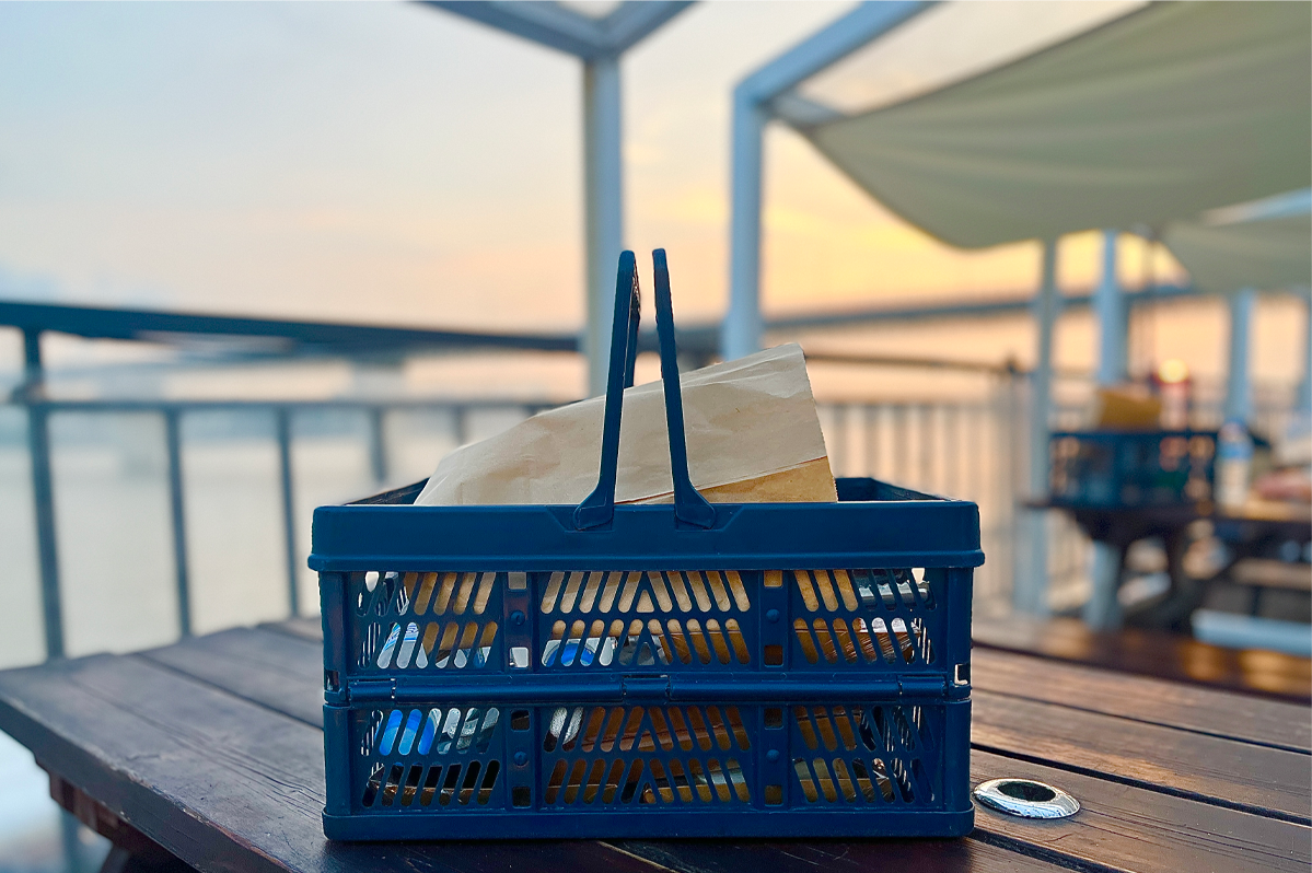Бид онлайнаар захиалга хийж, багц цэсийг онлайнаар захиалсан учраас бидний сагс урьдчилан бэлэн болсон байв. Бид сагсаа авахад үнэхээр сэтгэл догдолсон. Одоо, шарахдаа орцгооё!
