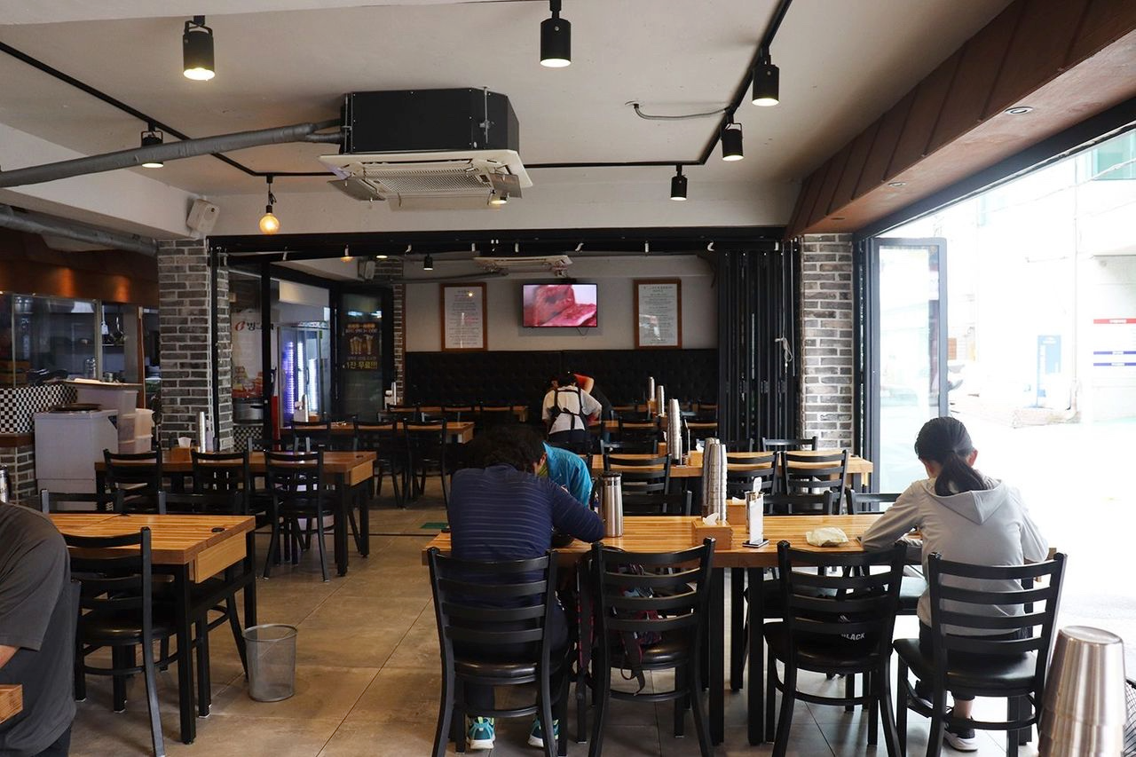 Дотор нь тийм ч олон суудал байхгүй бөгөөд суудлыг уламжлалт Солонгос маягийн газар дээр суух аргаар хийсэн. Шалан дээр суухад тийм ч сайн биш хүмүүст энэ төрлийн суудал хэцүү байж магадгүй.
