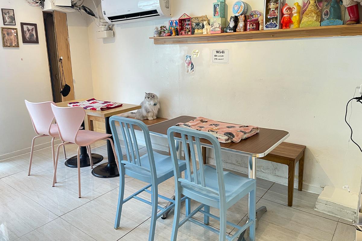 Үлдсэн суудлууд нь 2 хүний эсвэл 4 хүний суудлын зохион байгуулалттай бөгөөд ширээн дээр хөнжил тавьсан байдаг. Энэ нь муурнууд хүссэн цагтаа, хүссэн газраа чөлөөтэй амрах тав тухтай орчныг бүрдүүлдэг.