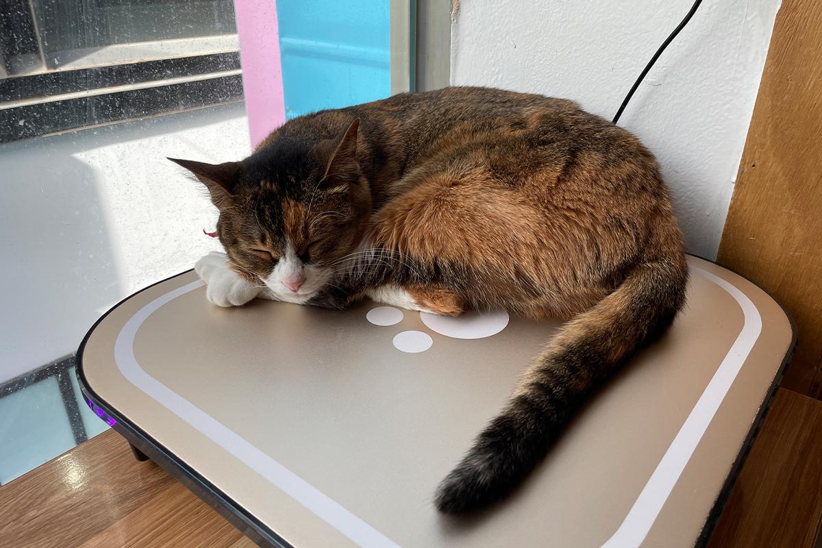 Барааны тоолуурын баруун талд зочид гуталгүй сууж болох намхан суудлын ширээнүүд байдаг. Энэ газрыг бүр ч илүү онцгой болгож өгдөг зүйл бол шалан дээгүүр халаалттай, дулаан гадаргуу дээр суунгаа муурнуудад ойртох боломжтой юм.