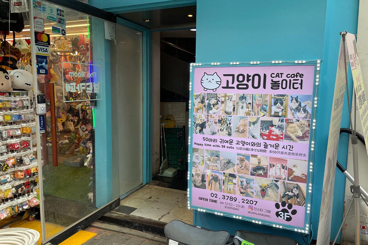 Өнөөдөр би Myeongdong дахь муурны тоглоомын талбайг үзэж сонирхов. Муурны тоглоомын талбай нь ойролцоогоор 50 оршин суугч мууртай, сонирхолтой нь энэ нь орон нутгийн хүмүүсээс илүү гадаадын жуулчдыг ихээр татдаг эмчилгээний кафе юм.