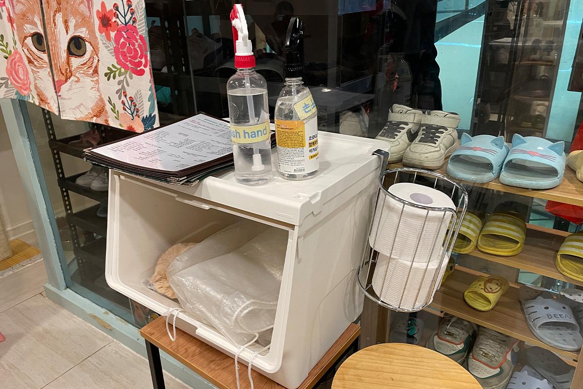 Орохын тулд, ажилтнууд таны эд зүйлсийг хадгалахад зориулж том цүнх өгөх бөгөөд муурын үс тэдэнд наалдсангүй гэдгийг батална. Тэд мөн танд гар ариутгагч санал болгоно. Муурнуудтай харилцахаасаа өмнө цэвэр байдлыг сахихаа санаарай!