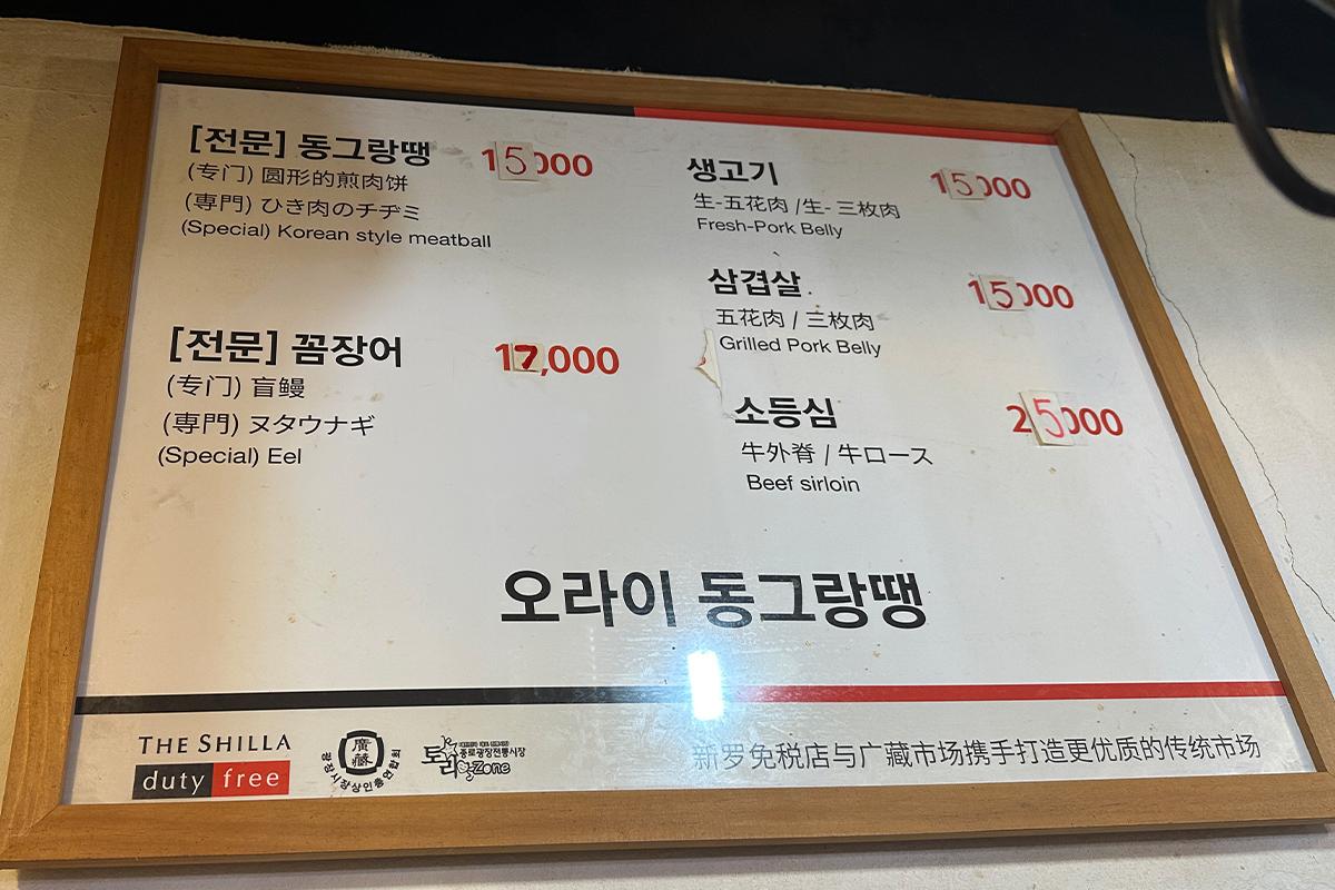 Үнийн хэмжээс үзэж болно, 15,000 KRW захийн 200г хүчинтэй байдаг Улаанбаатар хотноо. Бусад газар дээр, зөвхөн 180г эсвэл 150г-ийн 10,000 KRW-с дээш үнийн хэмжээ олддог болно. ЭнэDonggeurangttaeng нь гамбургер патти-н хэлбэртэй байна, Гарден Ил-д тооцох боломжтой байна. БидDonggeurangttaeng тоймоор хоолоо авлаа.