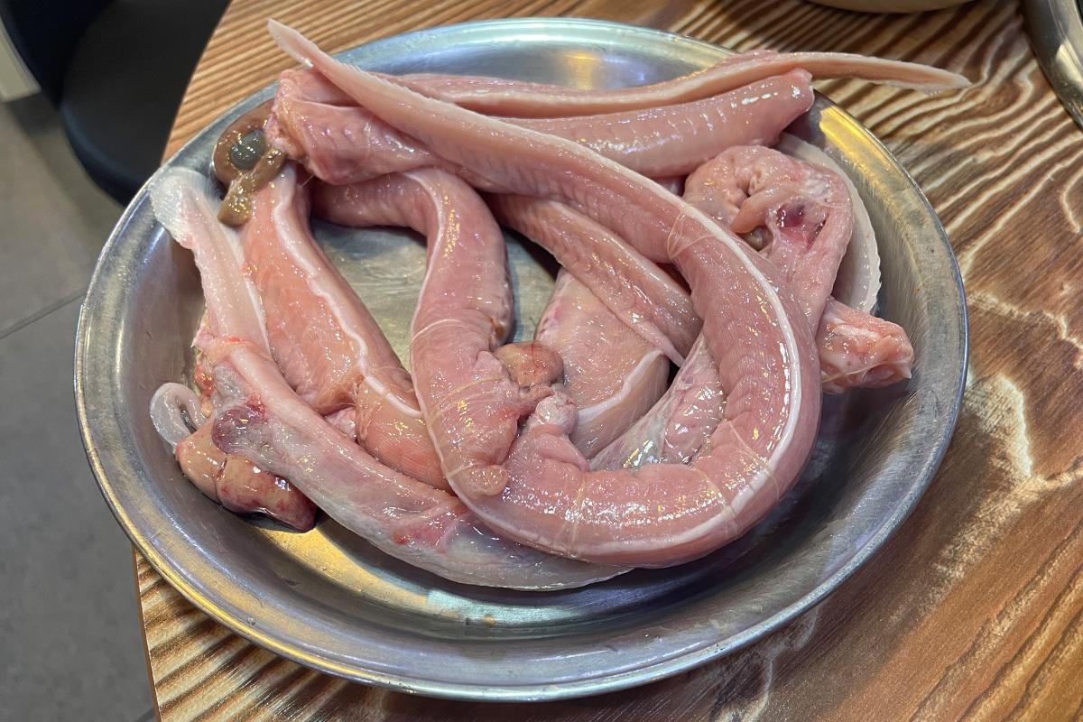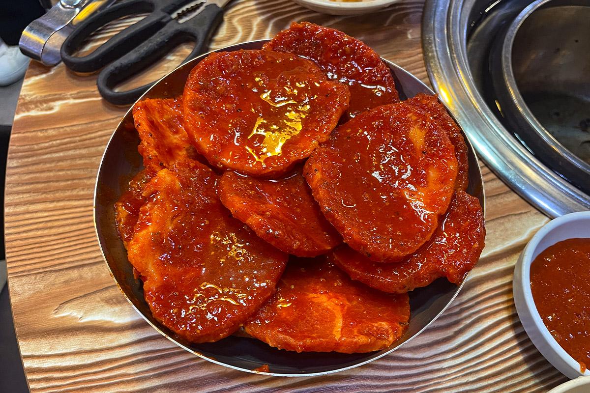 The Донггерантэнг turned out crispy and well-cooked! Despite the Gochujang seasoning, it wasn't spicy at all. Instead, it had a delightful sweet and spicy flavor. It pairs perfectly when wrapped with lettuce. Try the unique and delicious Gochujang-seasoned Донггерантэнг at Orai in Gwangjang Market!