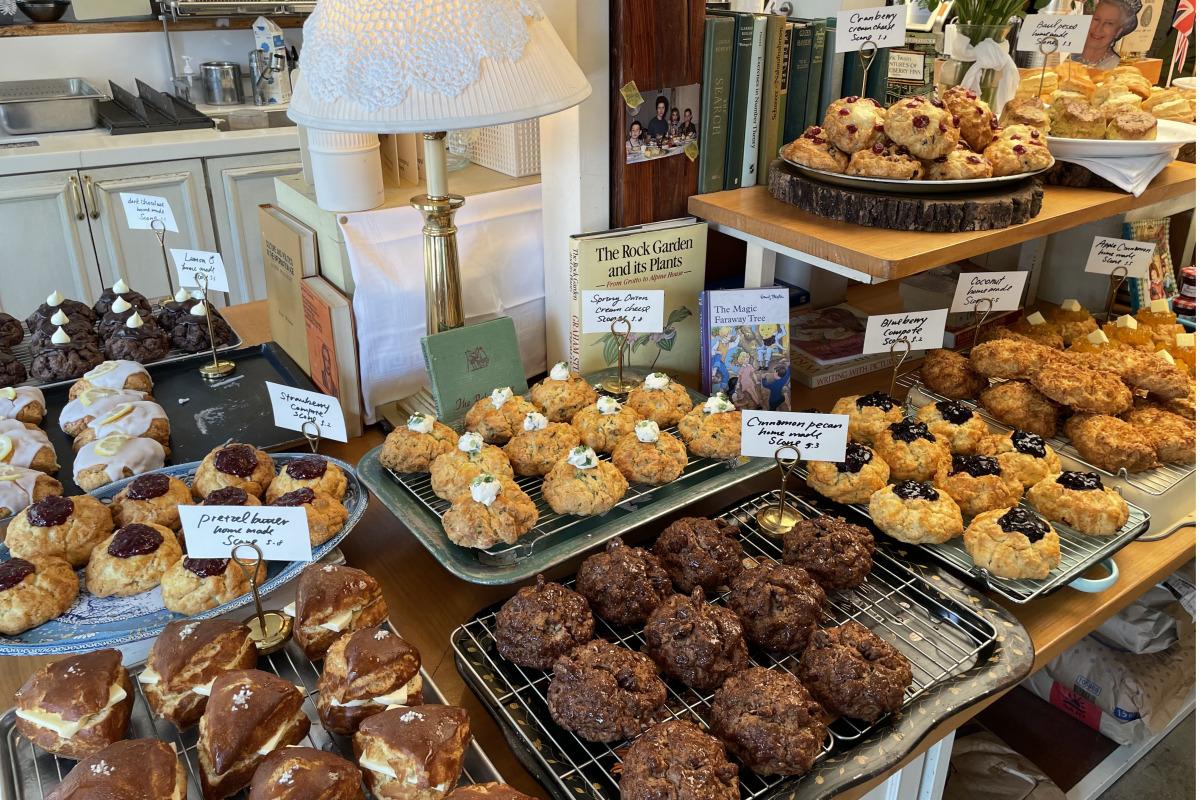 Энгийн боов болон Викториа бялуу нь кафе-гийн хамгийн их алдартай цэсний зүйлсийн нэг юм. Хэрэв та энгийн боовыг сонговол, талдаа гүзээлзгэний чанамал нэмэх боломжтой бөгөөд боов дээр түрхэх үед амтыг нь нэмэгдүүлдэг.