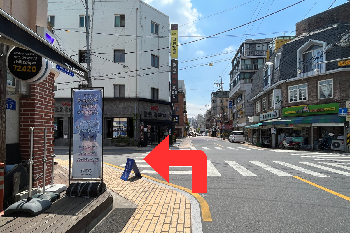 Зам хөндлөн гараад BBQ Chicken-ийн зүүн талын гудамж руу орно уу.