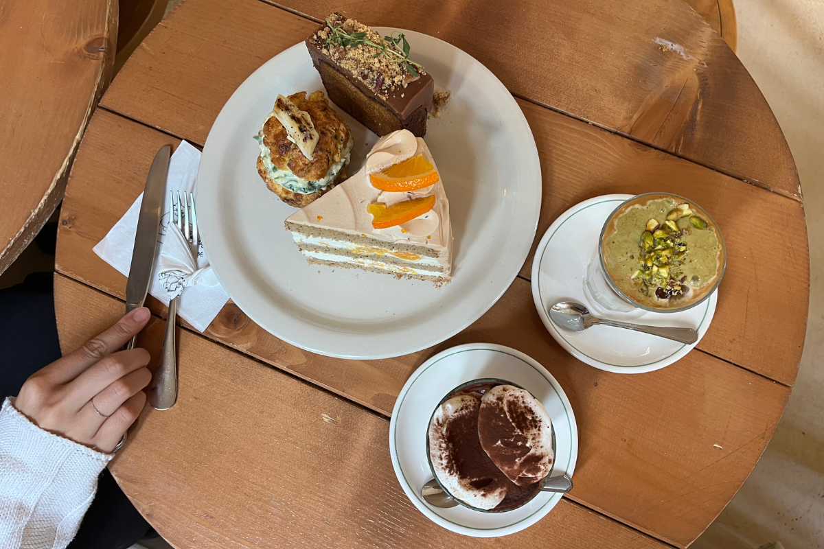 Бид нэг хэсэг бялуу идэхээс татгалзаж чадаагүй бөгөөд манай сонголт Earl Grey Orange бялуу байлаа. Цайны навчны үнэр нь исгэлэн, гашуун жүржийн хэрчимтэй гайхалтай хослон, гайхалтай хольц үүсгэсэн. Мөн бид Caramel Brownie авч, гэм нүгэл мэт санагдсан ч амттан сонирхогчид энэ баялаг бялууг хайрлах болно.