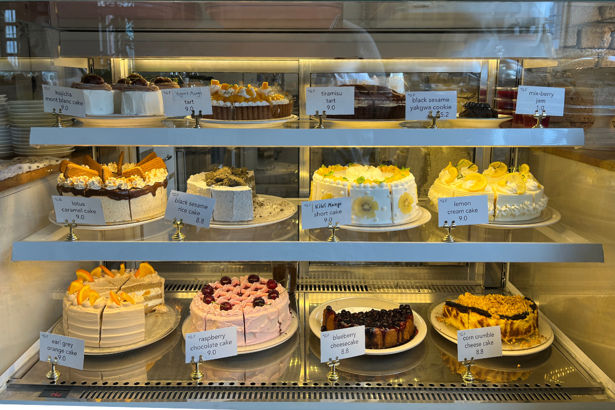 Лангууны хажууд хамгийн гоёмсог бялууны дэлгэц байна. Эдгээр нь сонгодог бялуунаас эхлээд уламжлалт Солонгосын амтанд урам зориг өгсөн бялуу хүртэл бүгдийг нь агуулдаг. Мөн улирлын шинэхэн жимсээр чимэглэсэн бялуу, тарьт ч байсан.