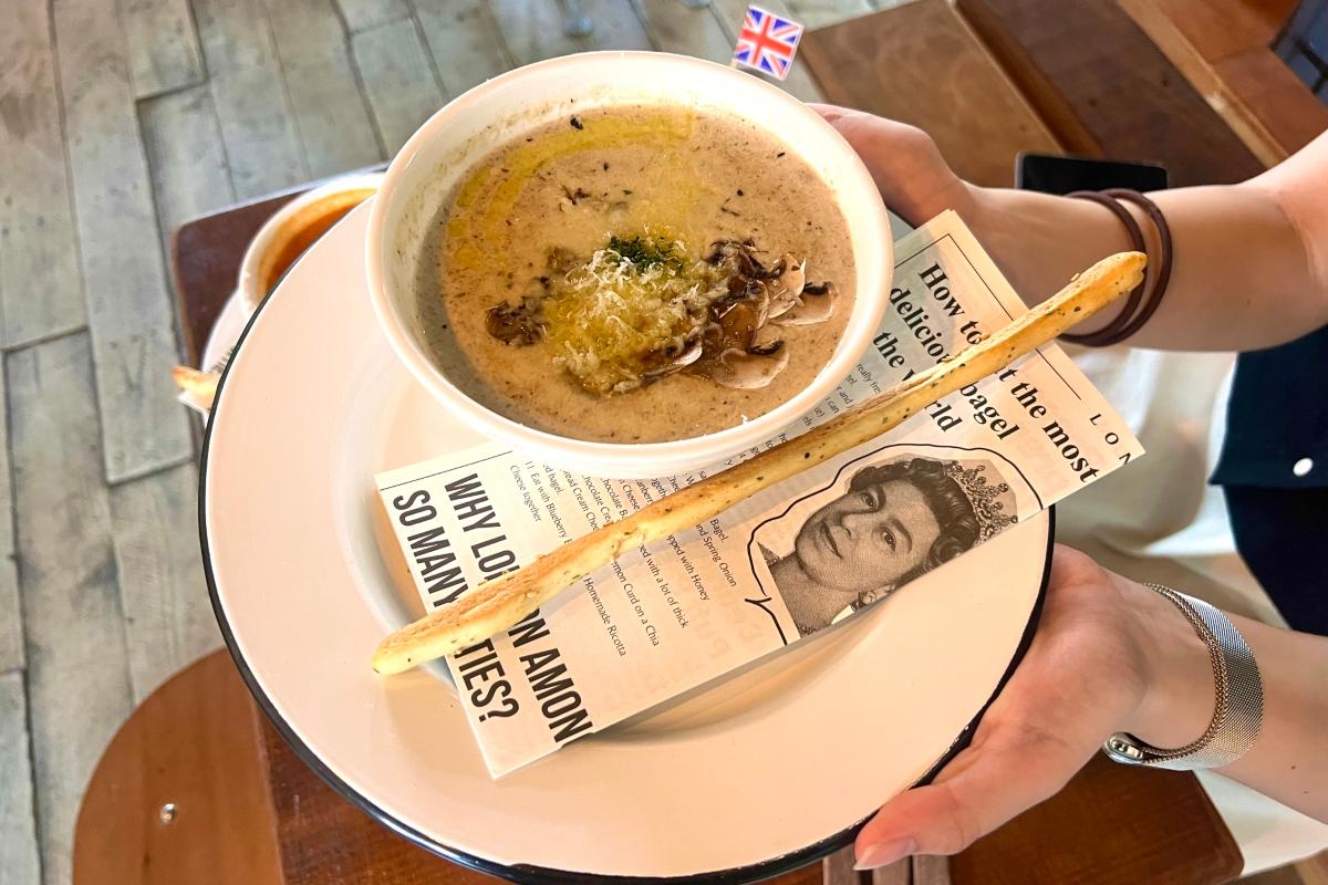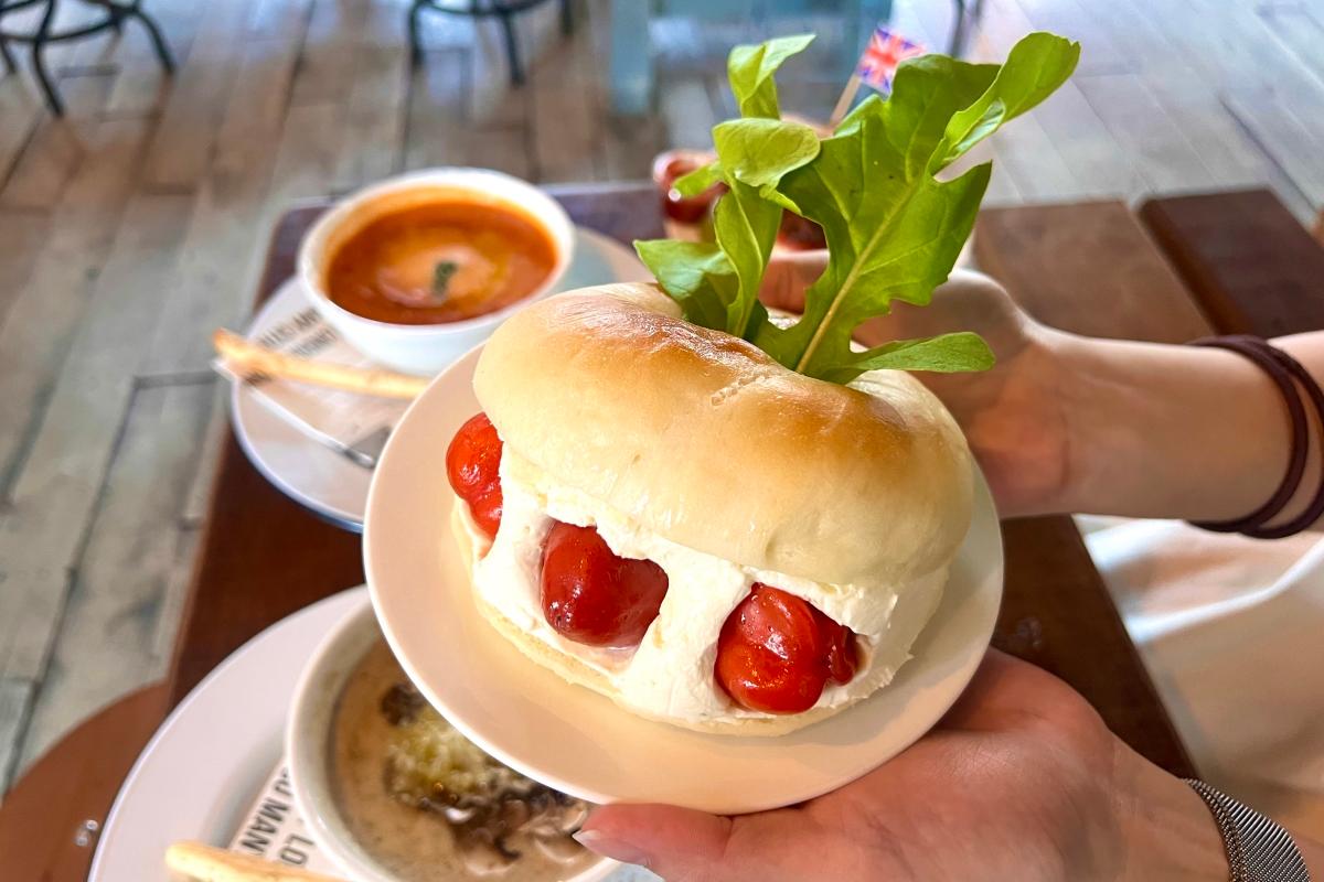 The London Bus Sandwich нь базилик соус, крем бяслаг хоорондоо чихэрлэг чинжүүтэй ба аргула талхны дээр наалдсан! Чихэрлэг чинжүүний хүчиллэг амт, крем бяслагийн тослог амттай хослол нь мэдээж амттай байлаа.