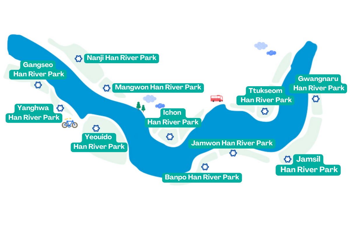 Сөүл хот 11 Хан мөрний парктай бөгөөд Ёоидо, Ттүксом, Банпо зэрэг хамгийн алдартай газруудтай. Хэрэв та тэнд байхад хоол захиалах гэж байгаа бол тогтоосон хүргэлтийн бүс, ашиглах заавар, тус бүрийн паркуудын онцлог шинжүүдийг мэдэх хэрэгтэй. Мөн парк бүр дээр майхан, хөнжил тавих тусгай тэмдэглэгээтэй хэсэг байдаг учраас үүнийг мэдэж байх хэрэгтэй. Мөн сануулахад—майхан барих гэж байгаа бол дүрмийн дагуу дөрвөн талаас нь хоёр талыг нь нээлттэй байлгах шаардлагатай.