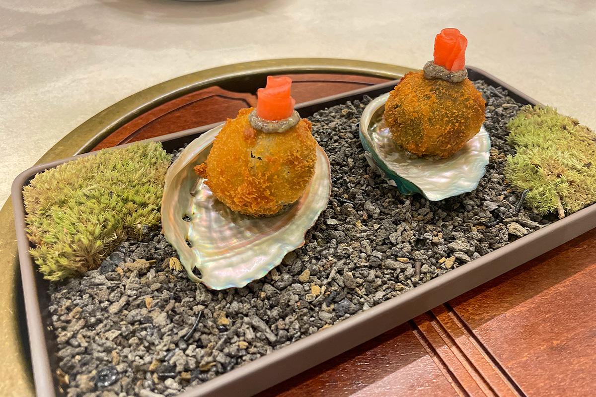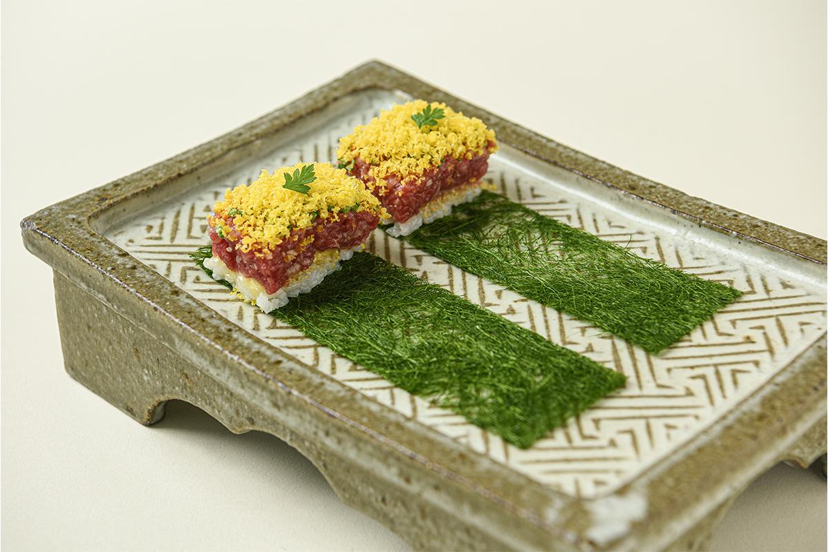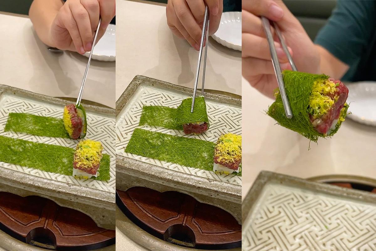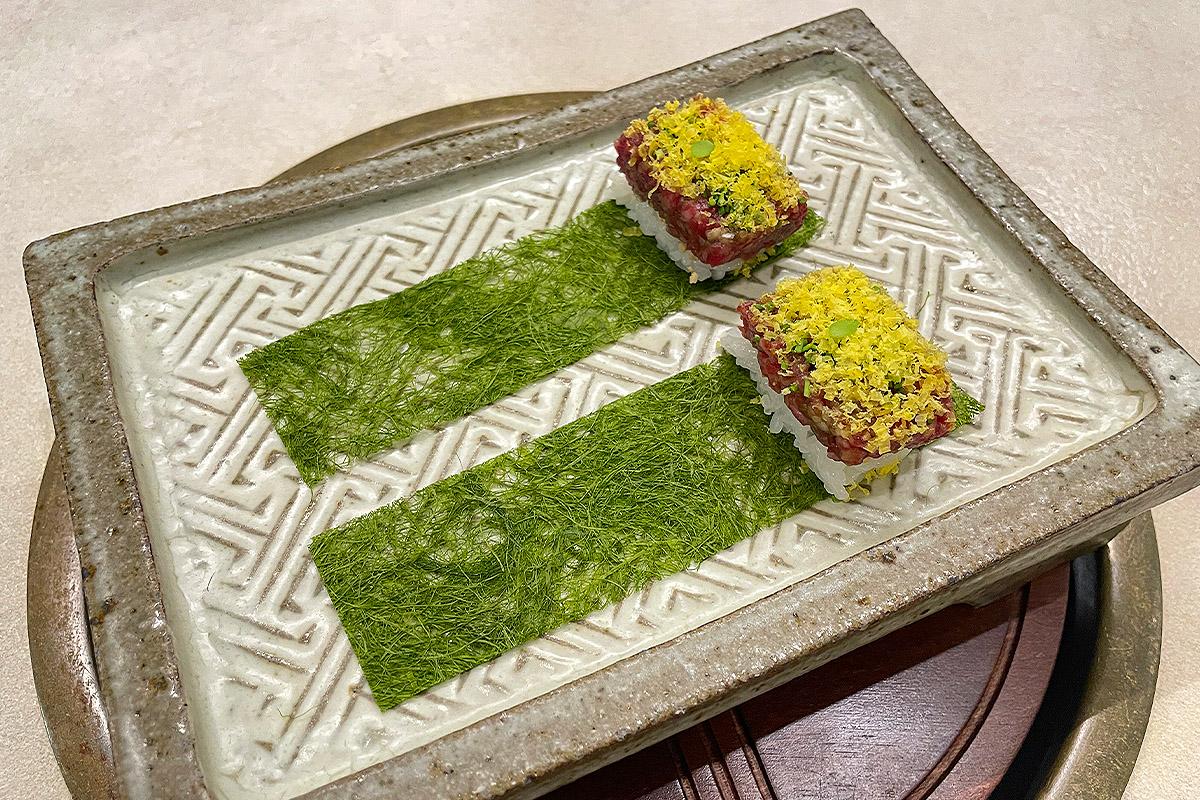 Дараа нь бидэнд Gamtae өгөв. Gamtae дээр yukhoe sushi, дээр нь nureunji twigim байсан.