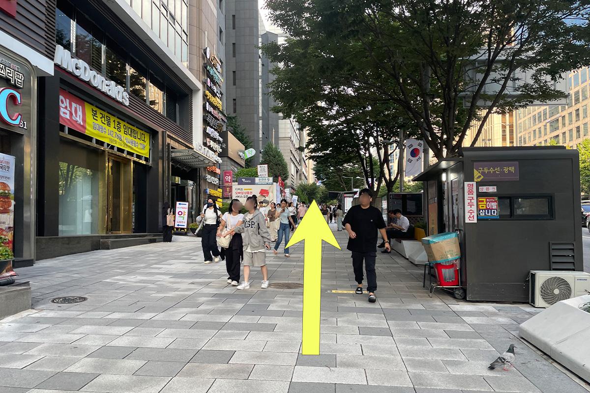 Шулуун 200м орчим яваад уулзвар өнгөрсний дараа Gangnam N Tower барилга таны өмнө харагдана.