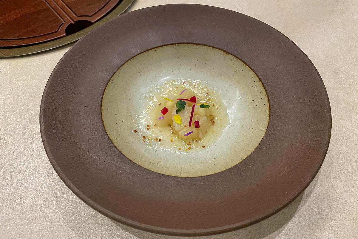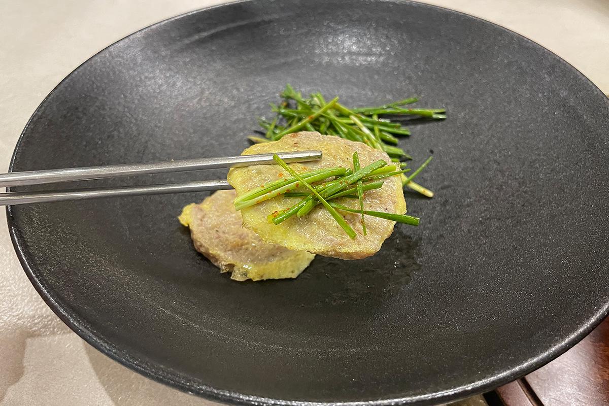 Түр хүлээсний дараа зуушыг авчирч өглөө. Хар гүнжидийн агшаамлаар эхэлж, цагийн зүүний дагуу тахианы хөлийн пёньюк, Анда Дайв салат, югхве, нокду жон, кимбугак, болон булгогийн ороомог байлаа, төв хэсэгт эрдэнэшишийн тарьт байв. Хар гүнжидийн агшаамал самарлаг мэт бөгөөд хөнгөн байв, исгэлэн үхрийн махны тартар-аас эхлээд шүүслэг үхрийн мах гүдгэр хүртэл, бүх хоол амттай байлаа.