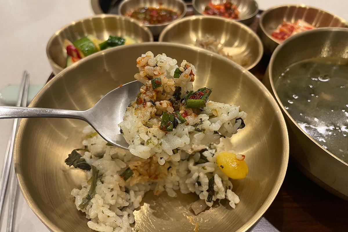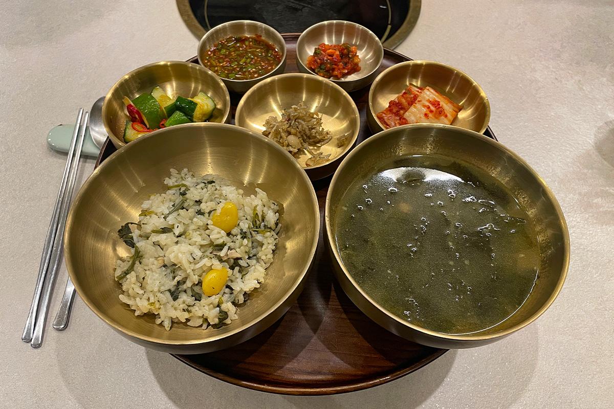 Дараа нь будаа бүхий хоол тавигдаж, тэжээллэг будаа, татсан үхрийн махан далайн байцааны шөл, хачираас бүрдсэн, бүгд нямбай тавигдсан байв. Солонгос хоолны үндэс мөн чанарыг хамгийн сайн харуулсан хоолнуудын дундаас би Ханвоо далайн байцааны шөлийн амтыг ихэд таалсан.