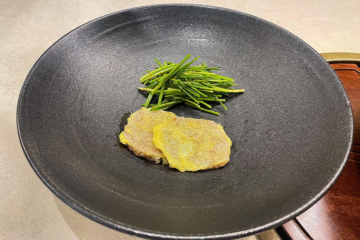 Дараа нь цонгюль соусаар амталсан замаг гаргаж тавив. Исгэлэн ногоон жүржийн соус болон уксус нь сэргээсэн амтыг бий болгож, шинэлэг амтанд дуртай хүмүүст таалагдана гэсэн баталгаа болно. Замагны бүтц нь тааламжтайгаар зөөлөн бөгөөд амт нь ямар ч тааламжгүй үнэрийн ул мөргүй цэвэрхэн байлаа.