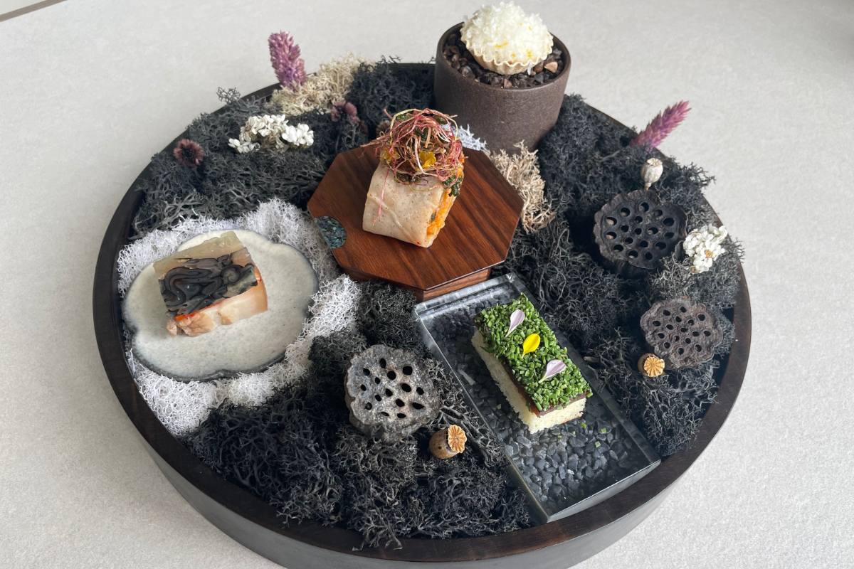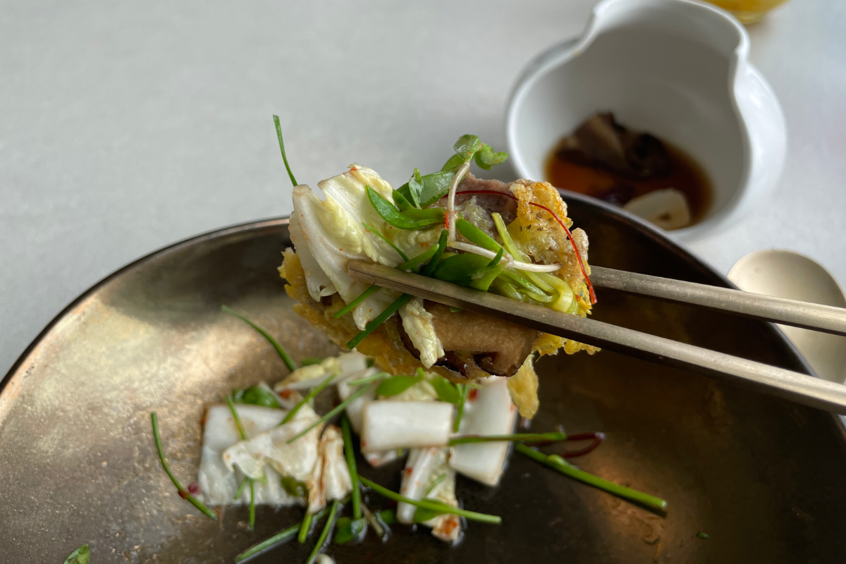 Хоёр дахь хоол нь Моксеокчохва хэмээх хоол бөгөөд дөрвөн өөр жижиг хоолыг өвөрмөц таваг дээр урлагийн бүтээл мэт байрлуулсан байв. Энэ хоол нь нэгэн бүрхэвчтэй бин, скатны гэдэс, трюфель богино хавирганы сэндвич, болон треск загасны тарт орно. Бидэнд тэдгээрийг энэ дарааллаар идэхийг зааварласан.