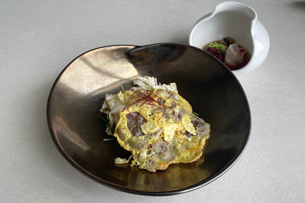 Үүний дараа тэд Royal Fish Salad болон Beef Pancakes үйлчилсэн. Үхрийн махан блинчик маш зөөлөн, амттай байсан бөгөөд мах нь хатуу биш байлаа. Та блинчигийг ирдэг сүмстэй эсвэл Royal Fish Salad дагалддаг шар буурцгийн сүмсэнд дүрж идэж болно.