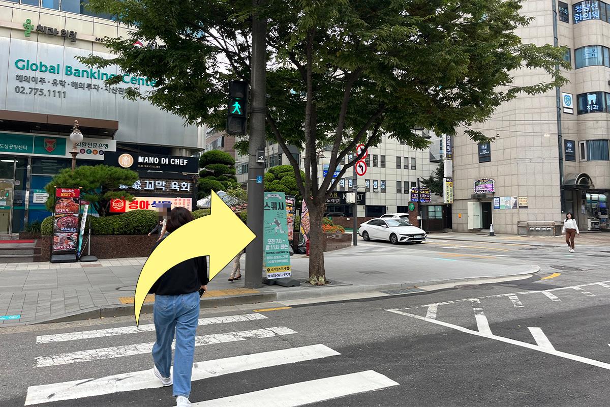 Гудамжийг гаталж, зүүн тийш эргээрэй.
