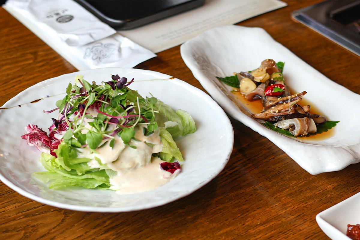 Эхлээд, гоё салат болон юкхое бэлдэнэ. Гоё салат нь улирлаасаа хамаарч бага зэрэг өөрчлөгдөнө. Өнөөдөр мөөгний шөл, ш garlicийн салат, ногооны гоё салат, болон салат тавигдсан.
