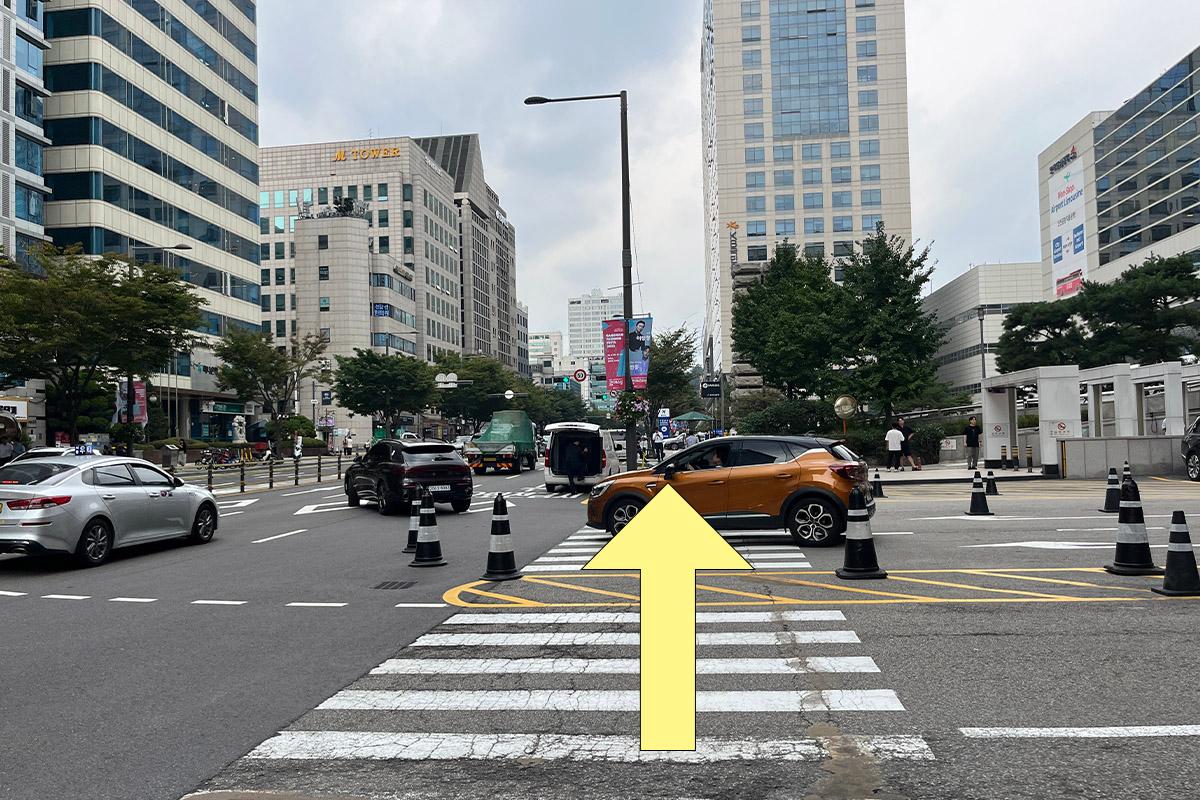 Хэрвээ та явган хүний гарц харах юм бол, шулуун явсаар байх хэрэгтэй.