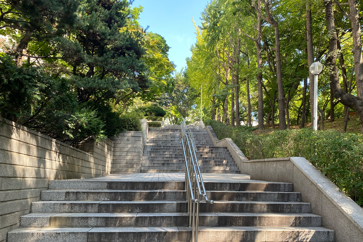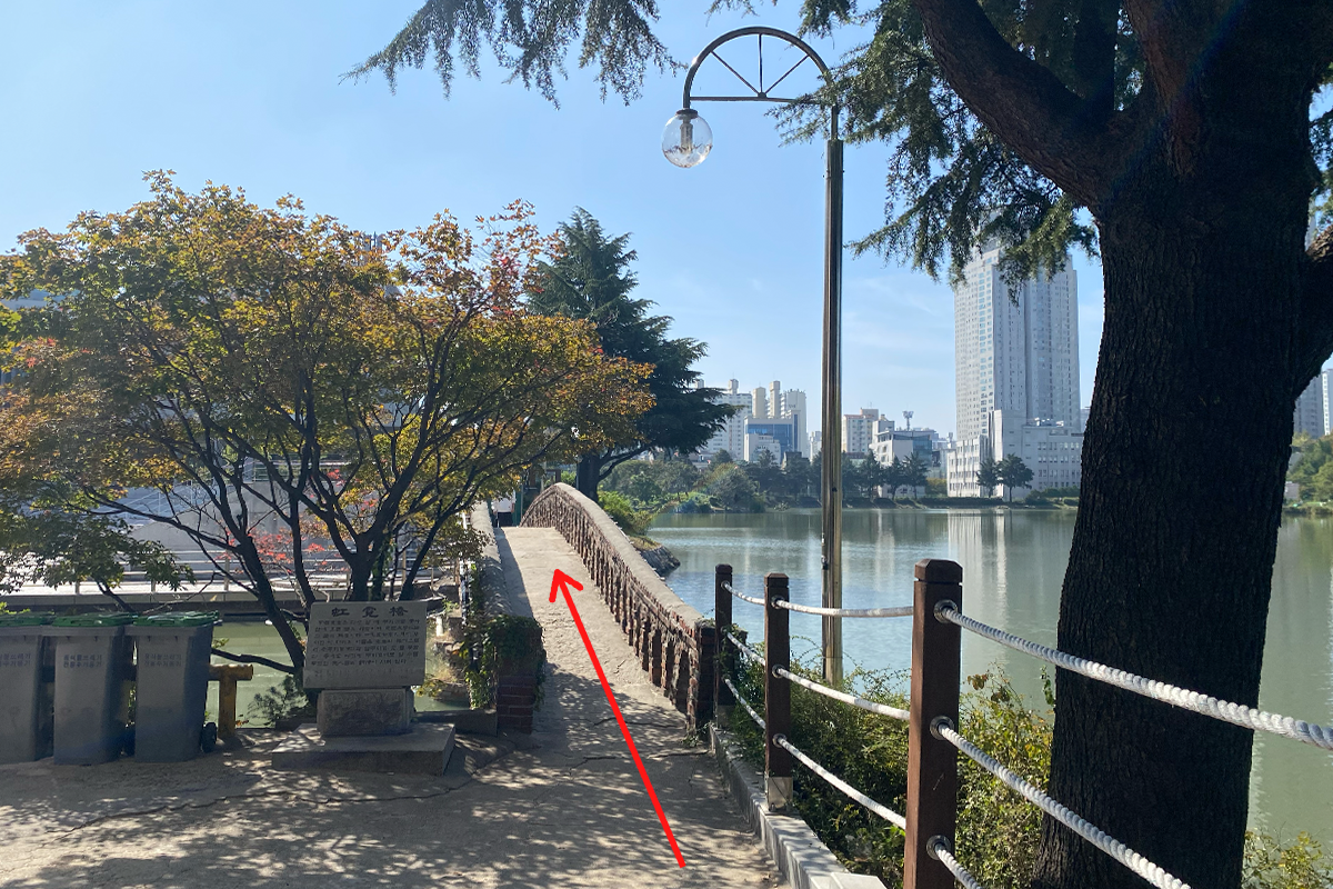 Хэлний сургуулийн барилгаас гарсаны дараа бид налуу доош алхаж, Коңкугийн их сургууль, Илгам нуурыг (일감호) харж чадсан.